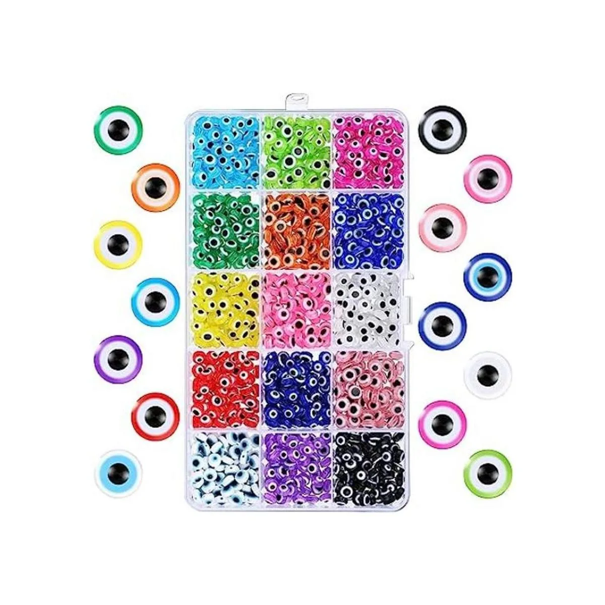 1050 cuentas de ojo turco de 15 estilos, cuentas de ojo turco de 0.23 pulgadas para hacer joyas, cuentas espaciadoras para hacer pulseras, aretes, collares, manualidades con cajas