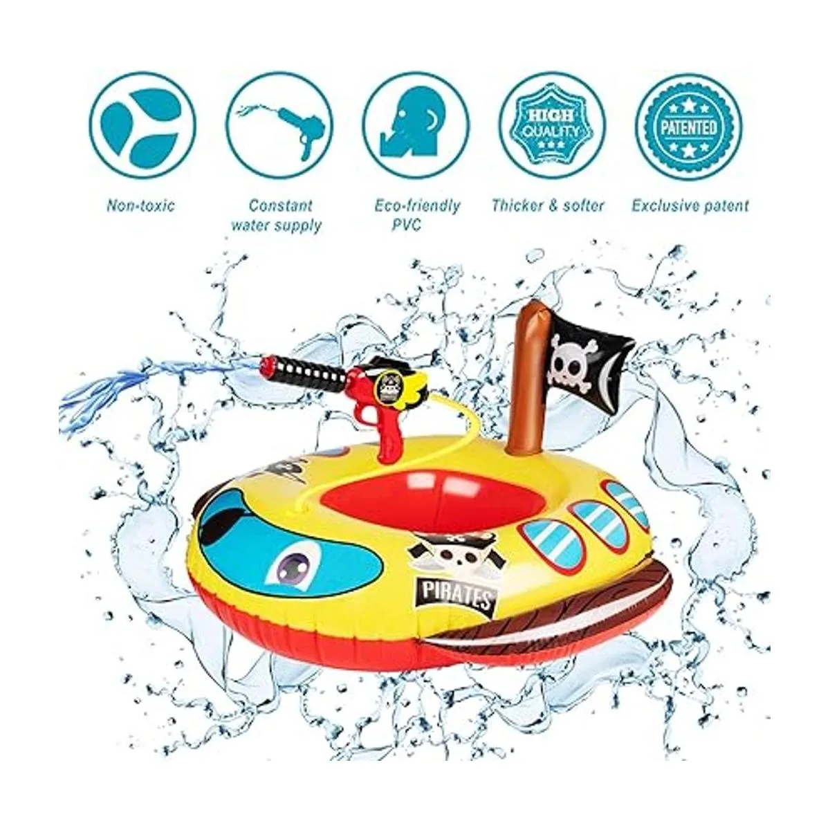 Incluye de agua de juguetes constantes. El flotador de piscina pirata está equipado con una de chorro integrada. El chorro extrae agua directamente de la piscina para un suministro de agua sin fin para que el capitán del barco nunca tenga que detener la diversión de recargar de nuevo. Los niños o niños pequeños pueden jugar fácilmente. Te da un agradable tiempo de piscina de verano con tus hijos y familia.