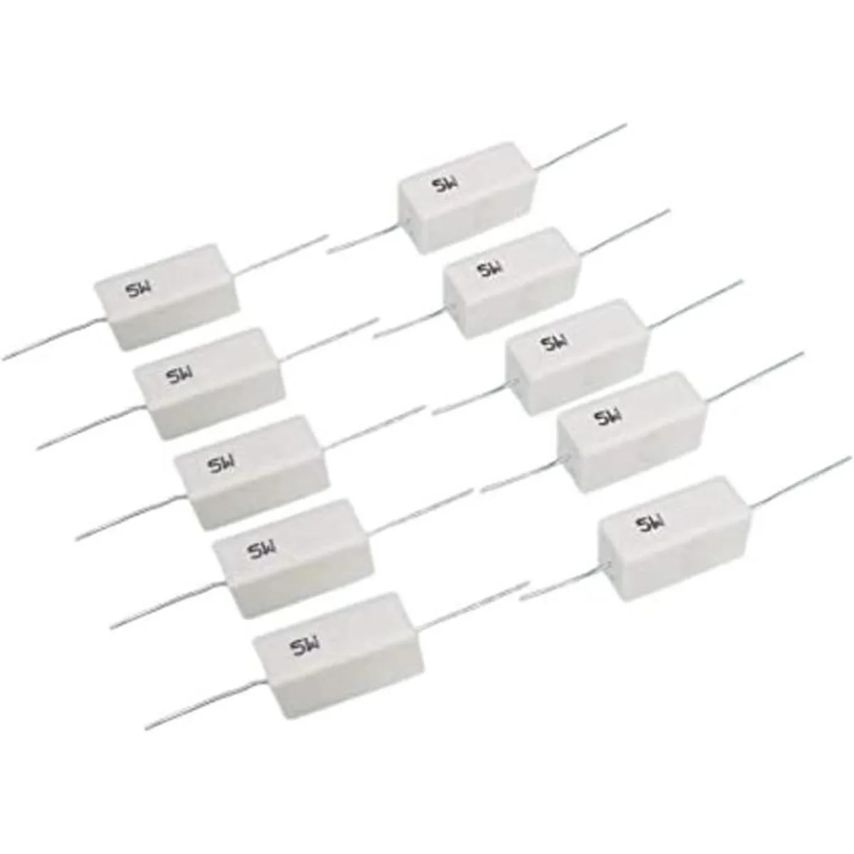 10pcs 100 ohmios 100RJ 5 vatios Axial Cerámica Cemento Resistencia de Potencia 5W