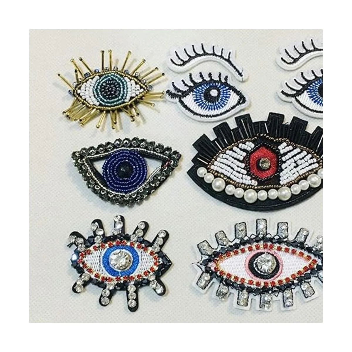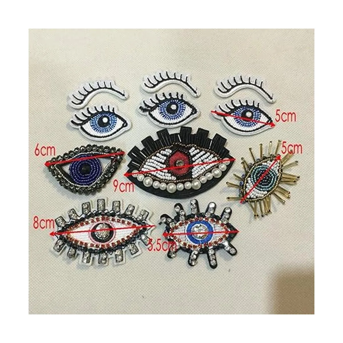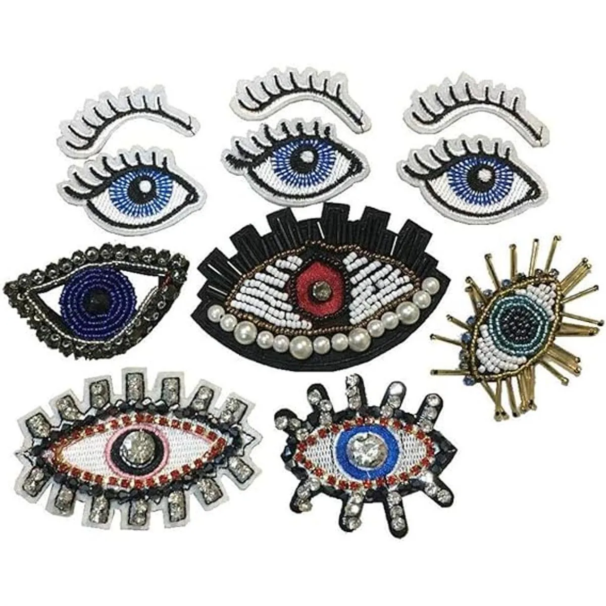 11 parches con diseño de corazón de lentejuelas y ojos malvados, para coser o coser
