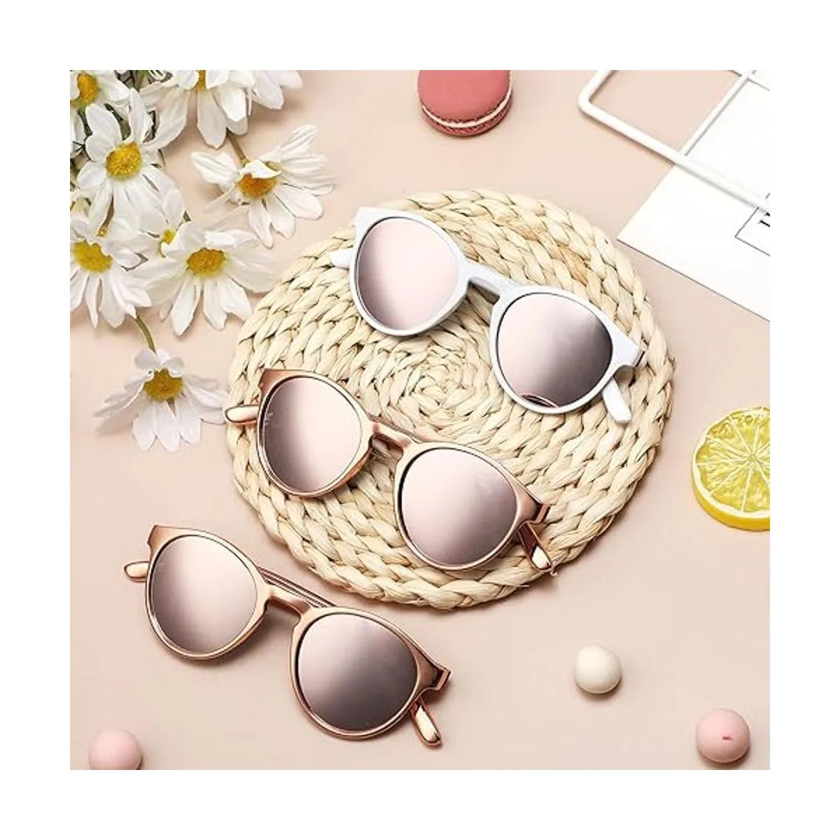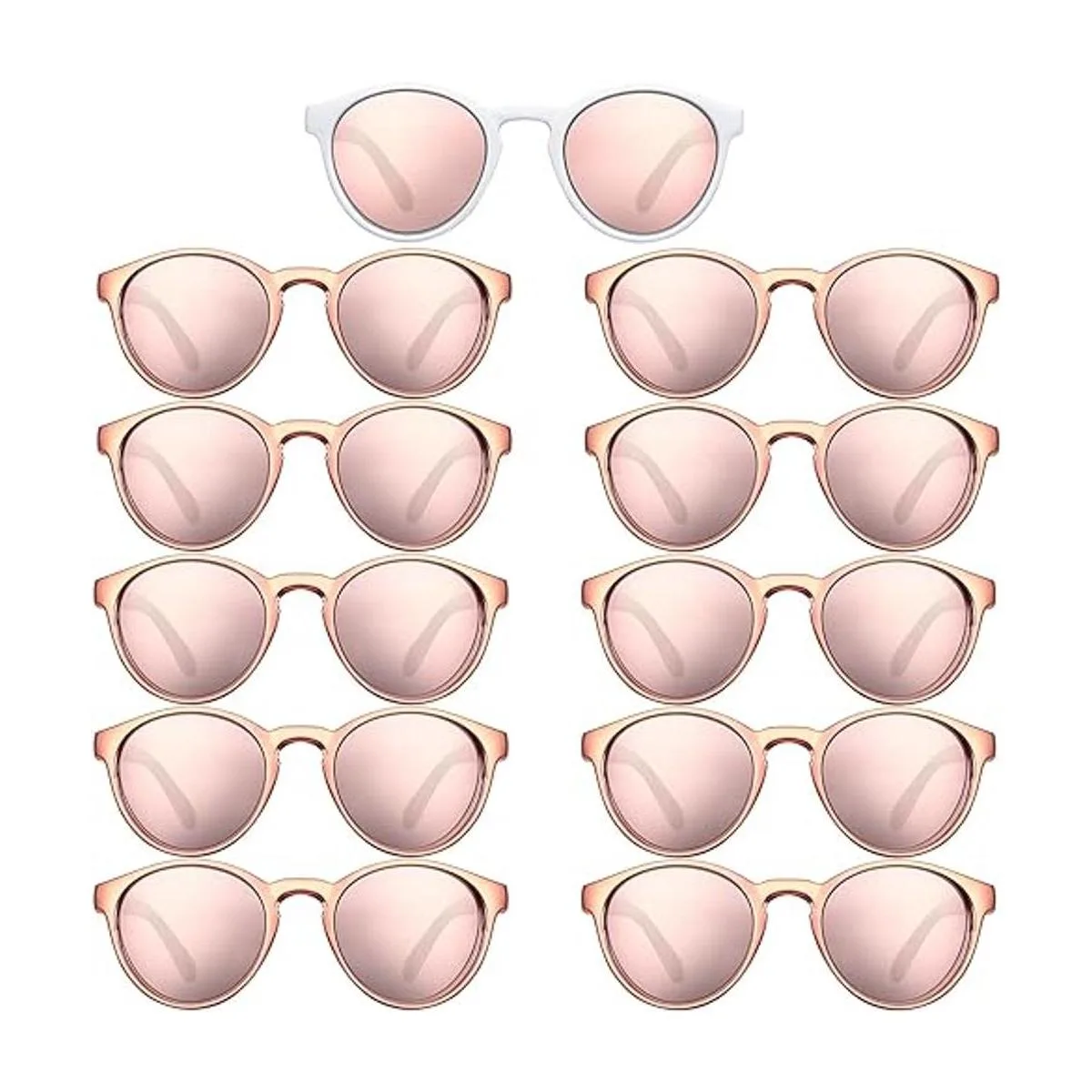 Gafas temáticas de boda: recibirás 11 copias de estas gafas de sol para dama de honor, a saber, 1 par de gafas con marco blanco y 10 pares de gafas con marco de oro rosa, suficientes para satisfacer tus necesidades de boda, compromiso o despedida de soltero, para que puedas tener una noche inolvidable y agradable con tus hermanas