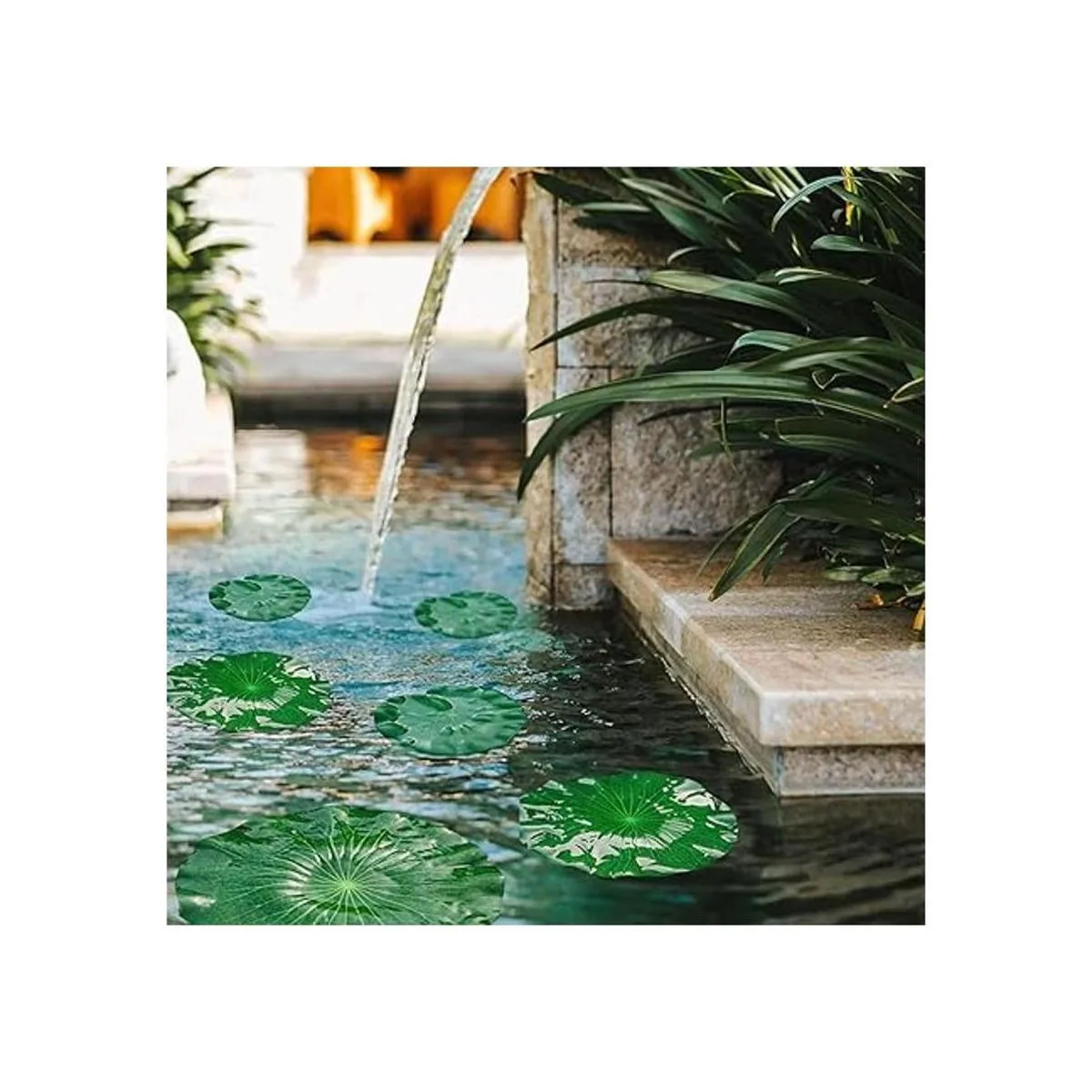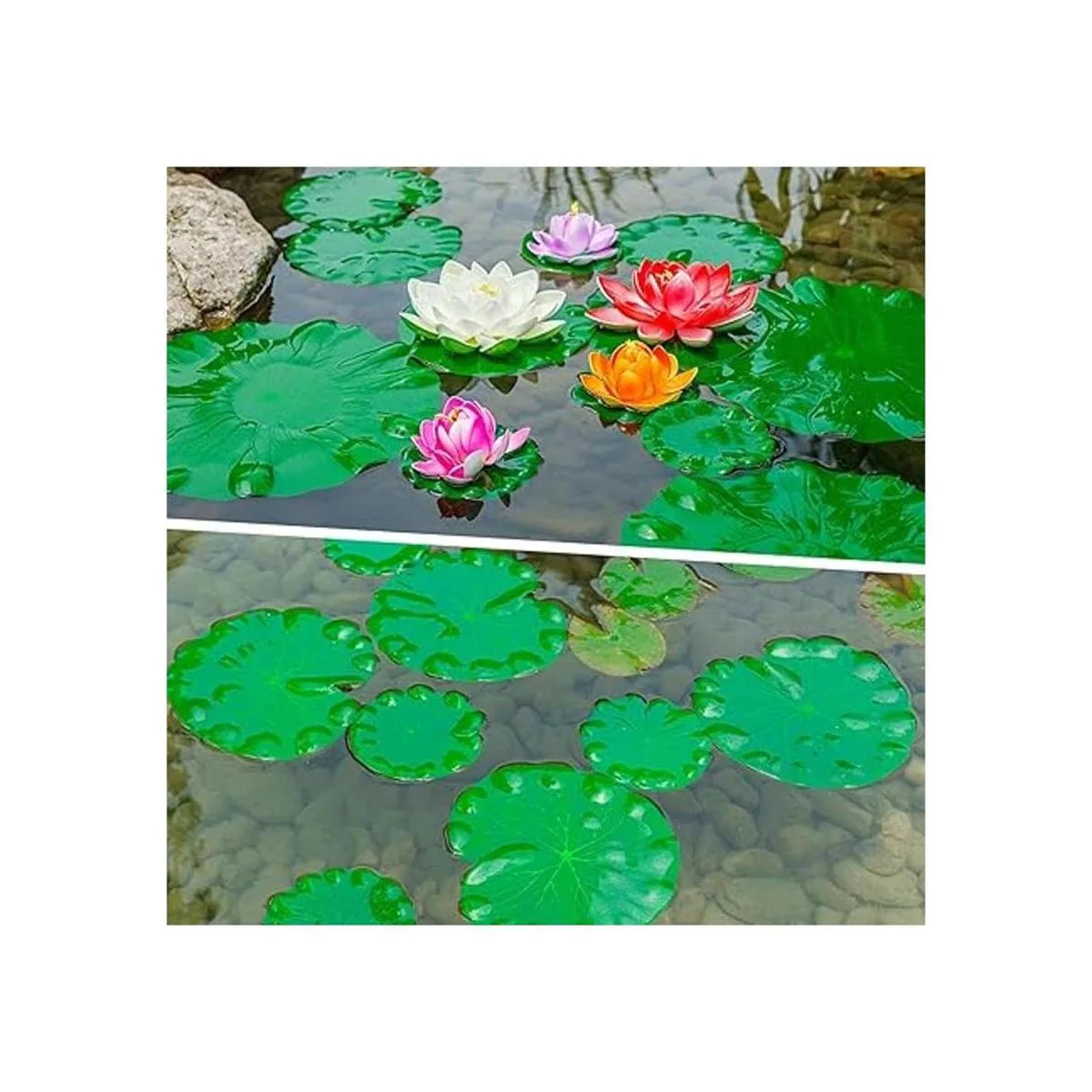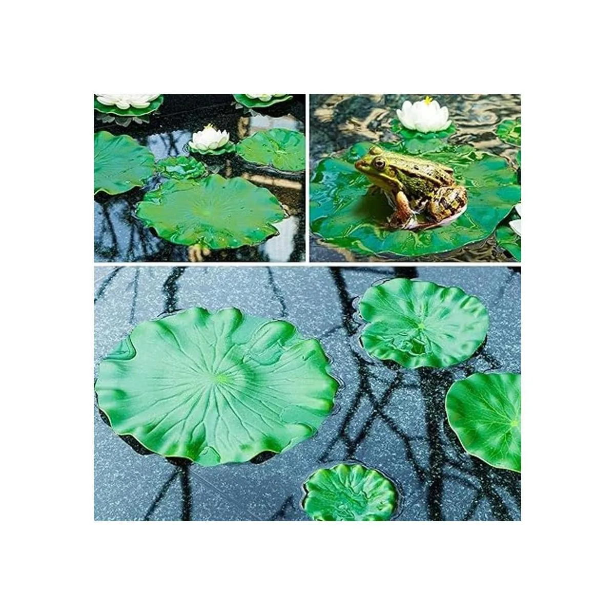 Material de calidad: la hoja de loto está hecha de EVA duradera y suave que no se desvanece incluso después de meses bajo el sol de verano. Perfecto para decorar tu estanque de peces o acuario.