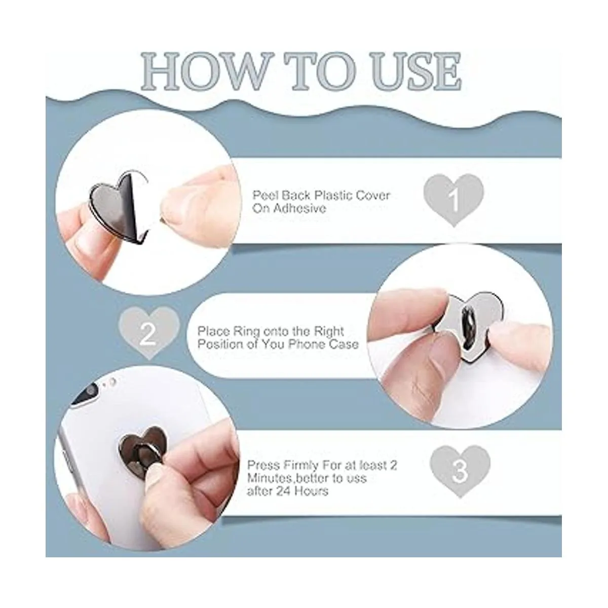 Diseño elegante y delicado: diseñado en forma de corazón, el gancho de teléfono con corazón se ve vivo y delicado, con color clásico, es llamativo y elegante; con colores dorado, plateado y negro, estos anillos de dedo para teléfono celular también te proporcionan más opciones para elegir, y pueden hacer que tu funda de teléfono móvil sea más atractiva
