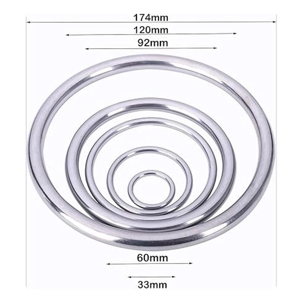 Múltiples aplicaciones en la vida: nuestros anillos de macramé de metal son accesorios para hamaca, campanilla de viento, adornos de macramé, proyectos de costura. Adecuado para decoraciones en bolsos, correas de hombro, arneses y ropa, cinturones de equipaje, mochila. También se pueden utilizar para colgador de plantas, anillo de pañuelos, correas, cuero, cinta, collar de perro.