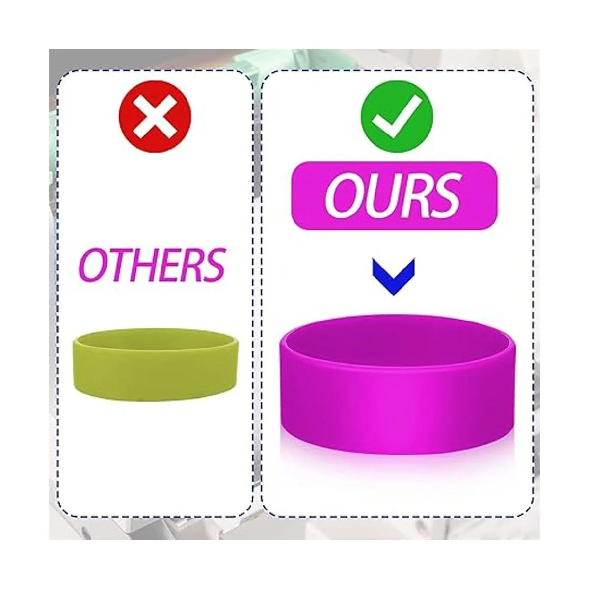 Tamaño adecuado para usar: cada banda de silicona para sublimación mide aproximadamente 0.08 pulgadas de grosor y 0.94 pulgadas de ancho, con una circunferencia de aprox. 7.8 pulgadas, adecuado para sublimación de vasos delgados, lo que te permite tener un proyecto suave y agradable