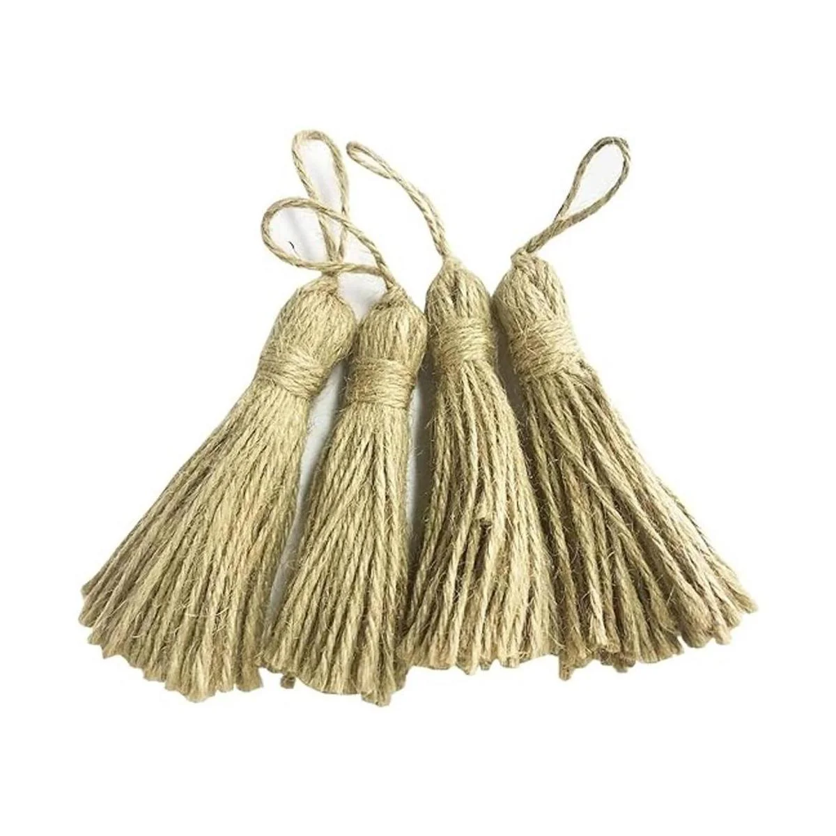 Borlas de yute natural para decoración de bodas, día festivo, Acción de Gracias, Navidad, fiestas, decoraciones de otoño, alfombras, mesas, mantas, cortina, ropa, decoración de cuentas de madera, decoración de joyero, decoración del hogar y manualidades.