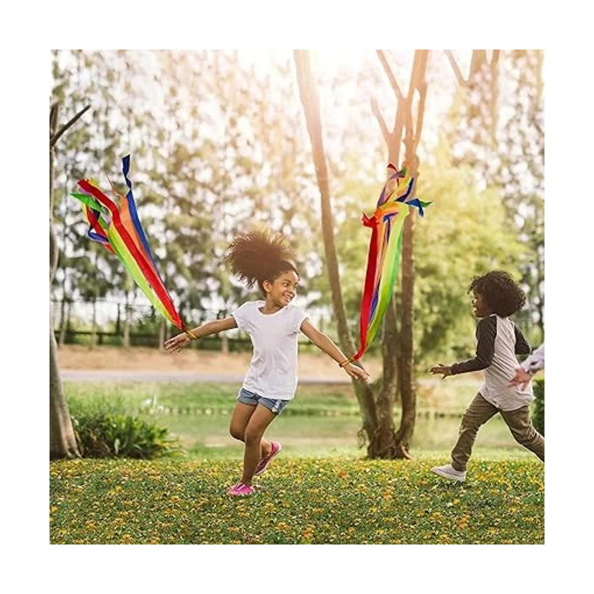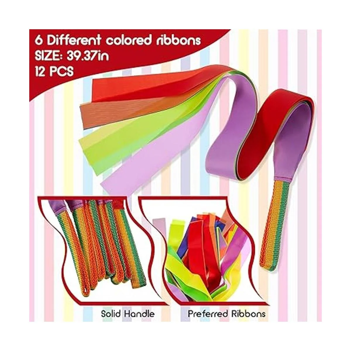 Cantidad suficiente: puedes obtener 12 cintas de baile arcoíris a la vez, los colores de las cintas son brillantes y vivos, son los hermosos colores arcoíris que les gustan a los niños, adecuados para niños a los que les gusta girar, bailar y estar activos