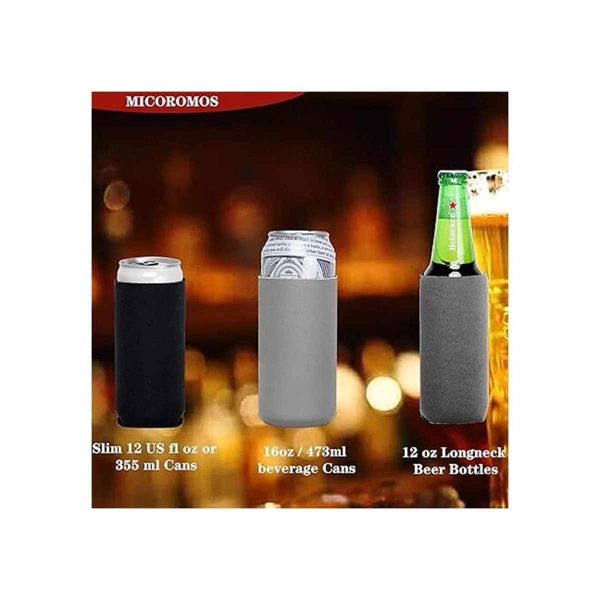 Gran compatibilidad: el aislante de latas MICROCOSMOS es bueno para latas delgadas de 12/16 onzas, seltzer con pinchos, vino enlatado. El ajuste de lata y botella puede variar en función de la forma.