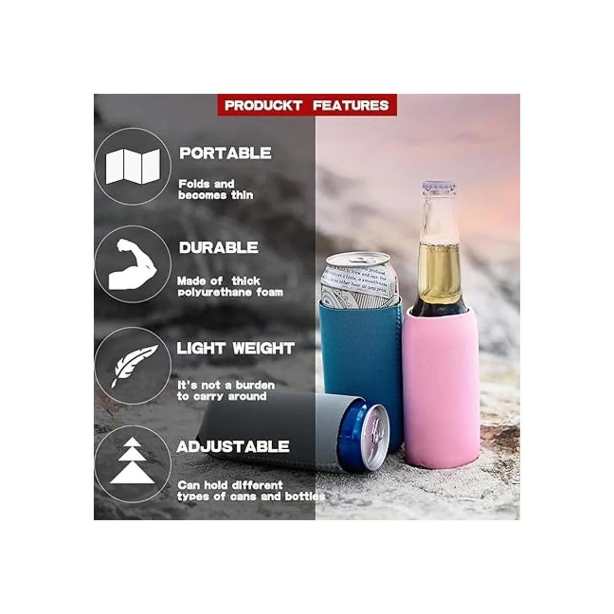 Portátil y reutilizable: nuestro enfriador de latas es ligero y fácil de plegar para llevar, bueno para usar en interiores, exteriores y viajes. Estas mangas se pueden lavar a máquina o a mano. Son duraderas y no se deforman después de múltiples limpias.