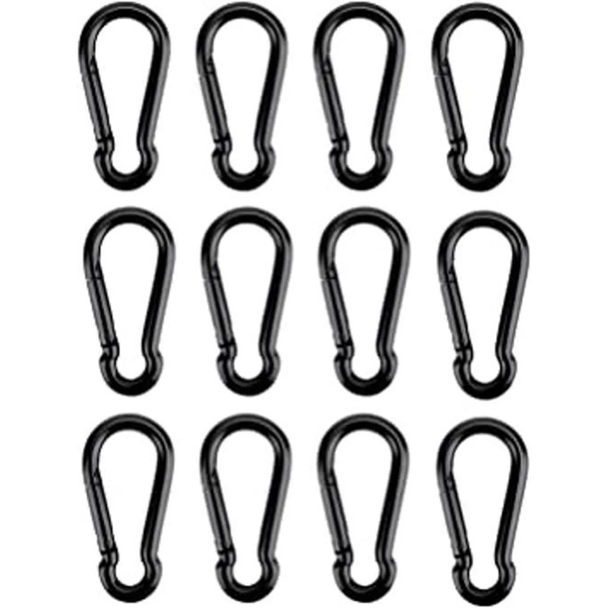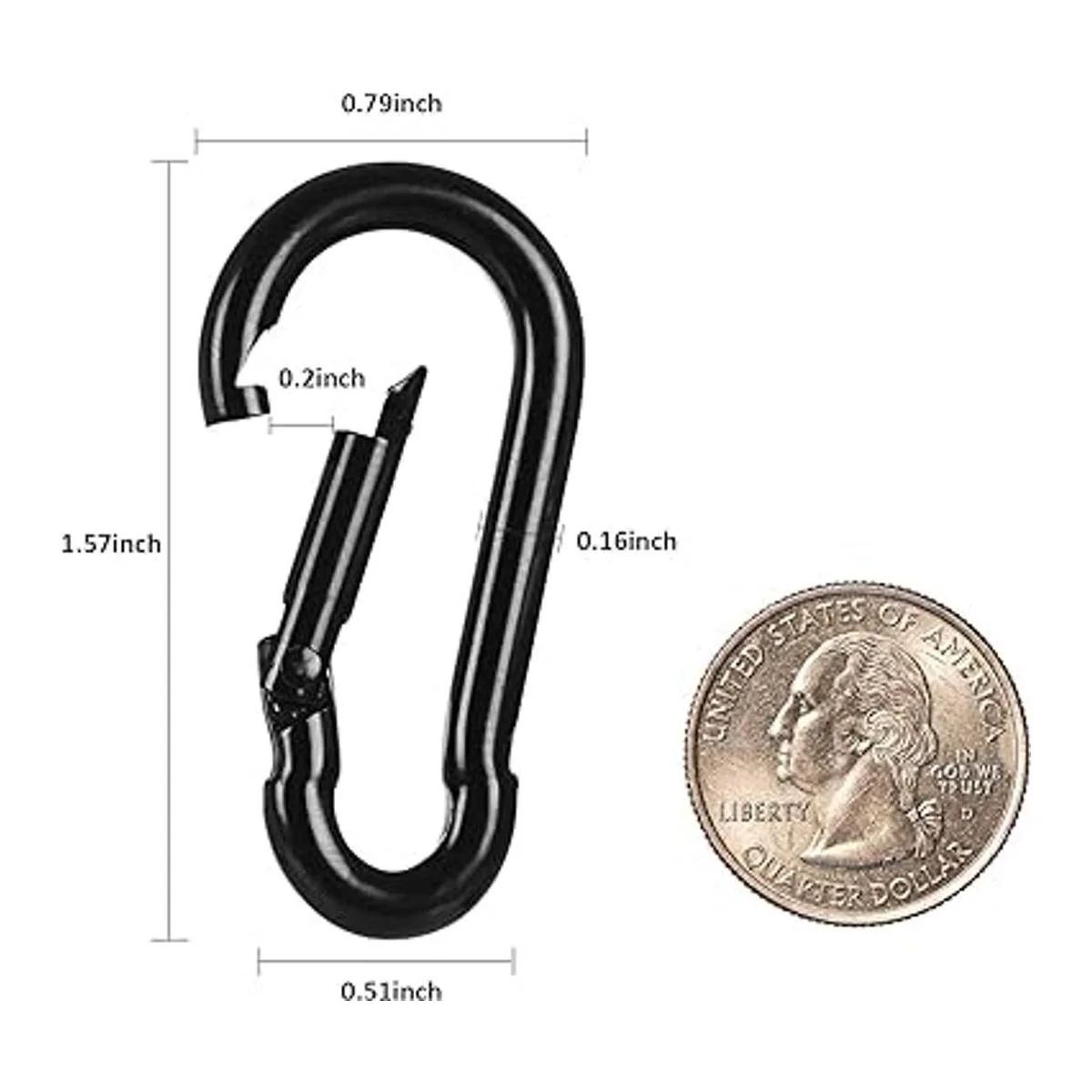 Tamaño del mosquetón: longitud del mosquetón: 1.57 pulgadas, ancho: 0.79 pulgadas. El paquete contiene: 12 mosquetones negros.