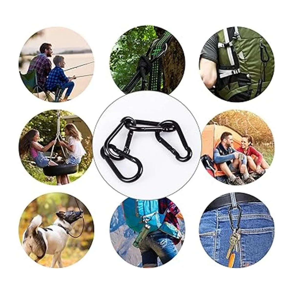 Carga de seguridad de 110 libras: los broches de resorte de mosquetón son perfectos para llaveros, cadenas, comederos de pájaros colgantes, cuerdas, pesca, mascotas, accesorios de bricolaje.