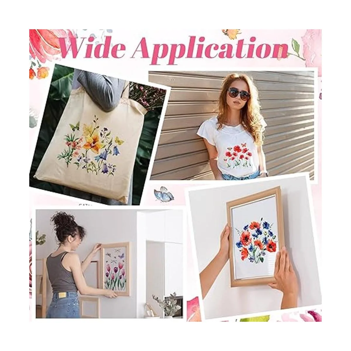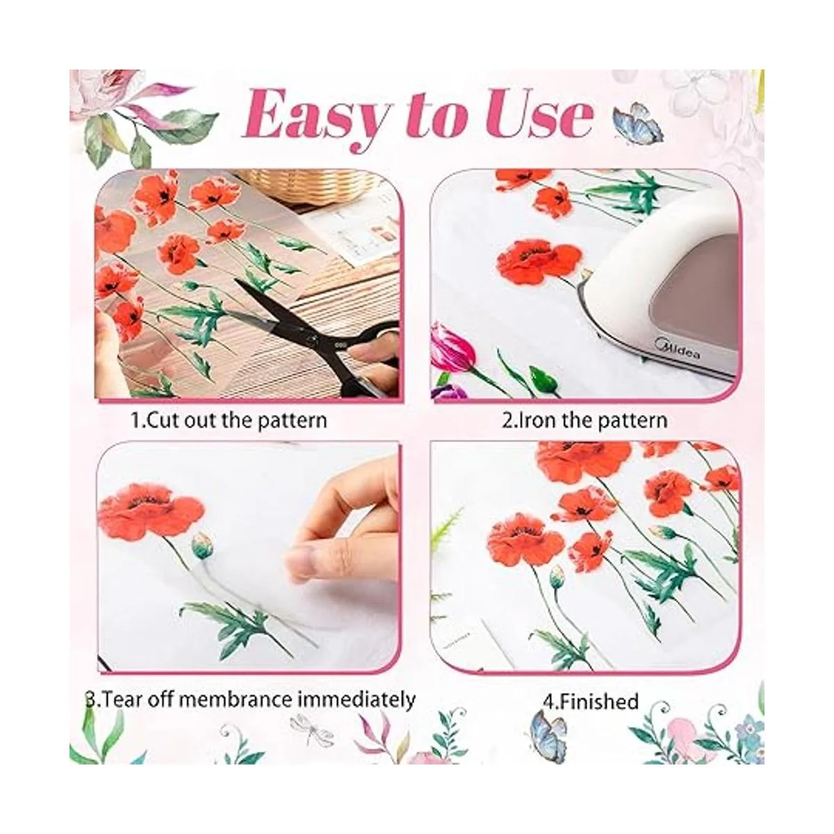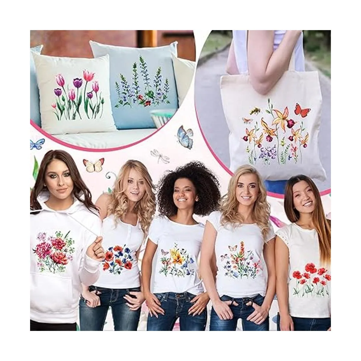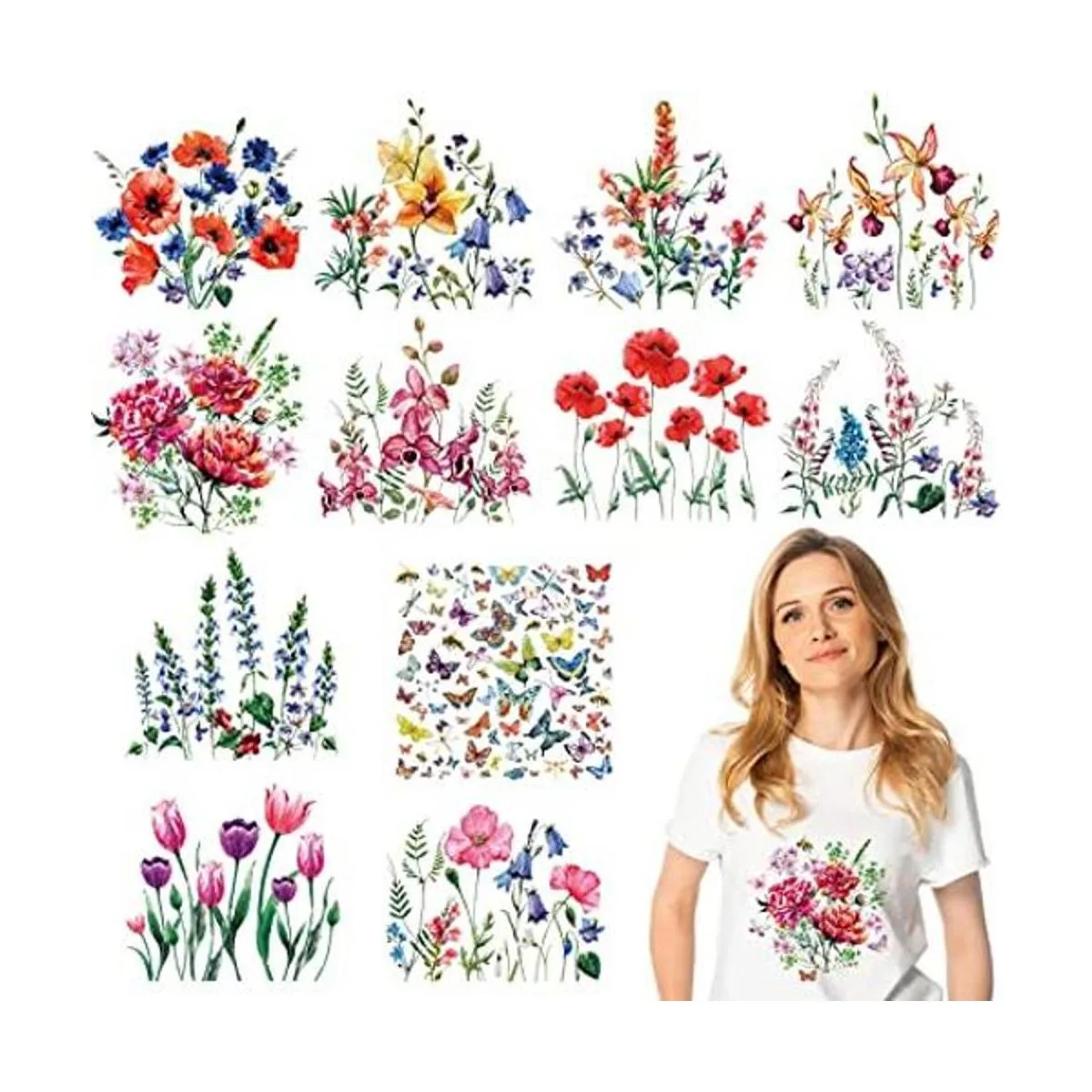 Hermoso diseño de flores y mariposas: estas calcomanías para camisa están diseñadas con muchas flores silvestres, mariposas, abejas, libélulas, etc. Están llenas de sensaciones artísticas, atractivas y elegantes, fáciles de llamar la atención de los demás, mostrando tus buenos gustos