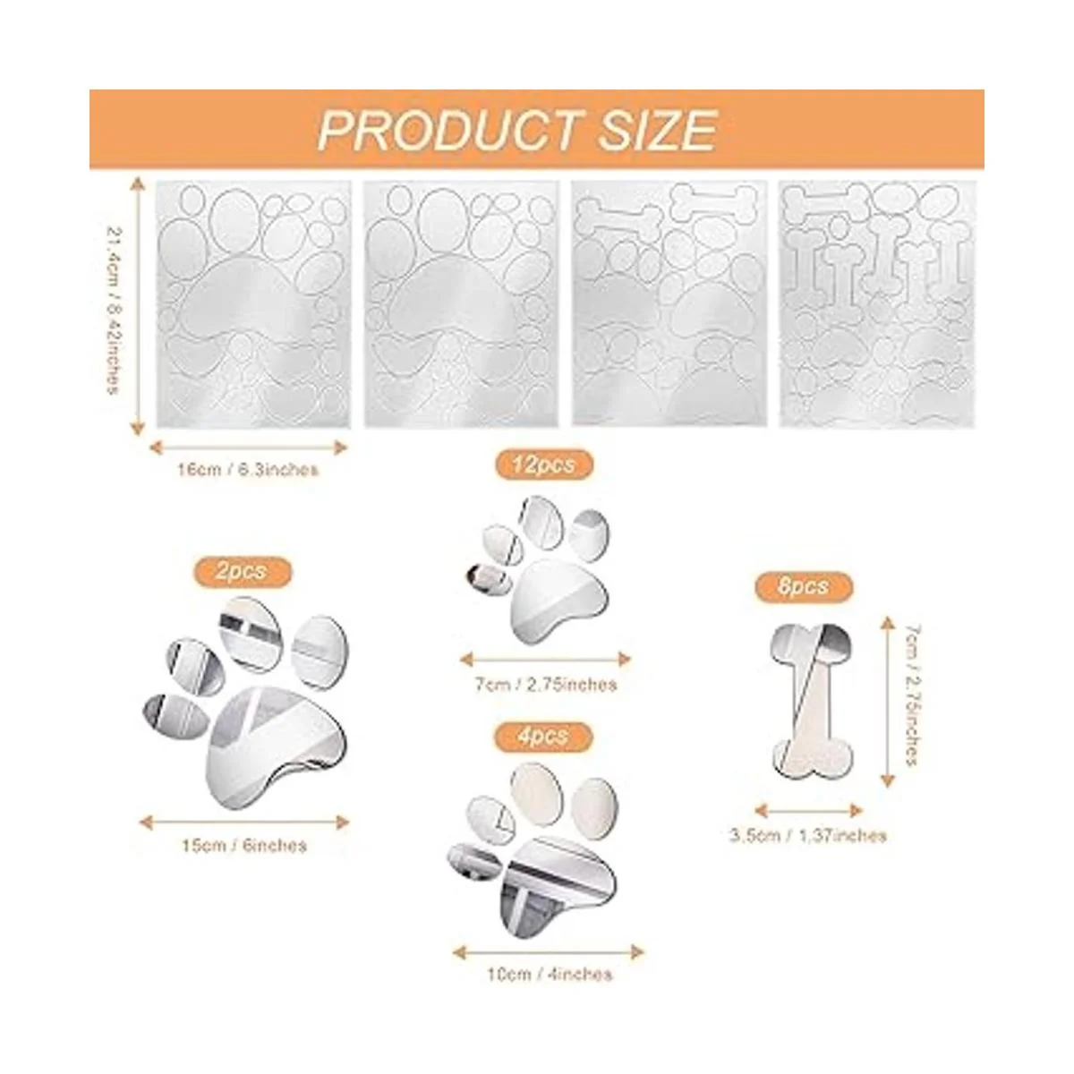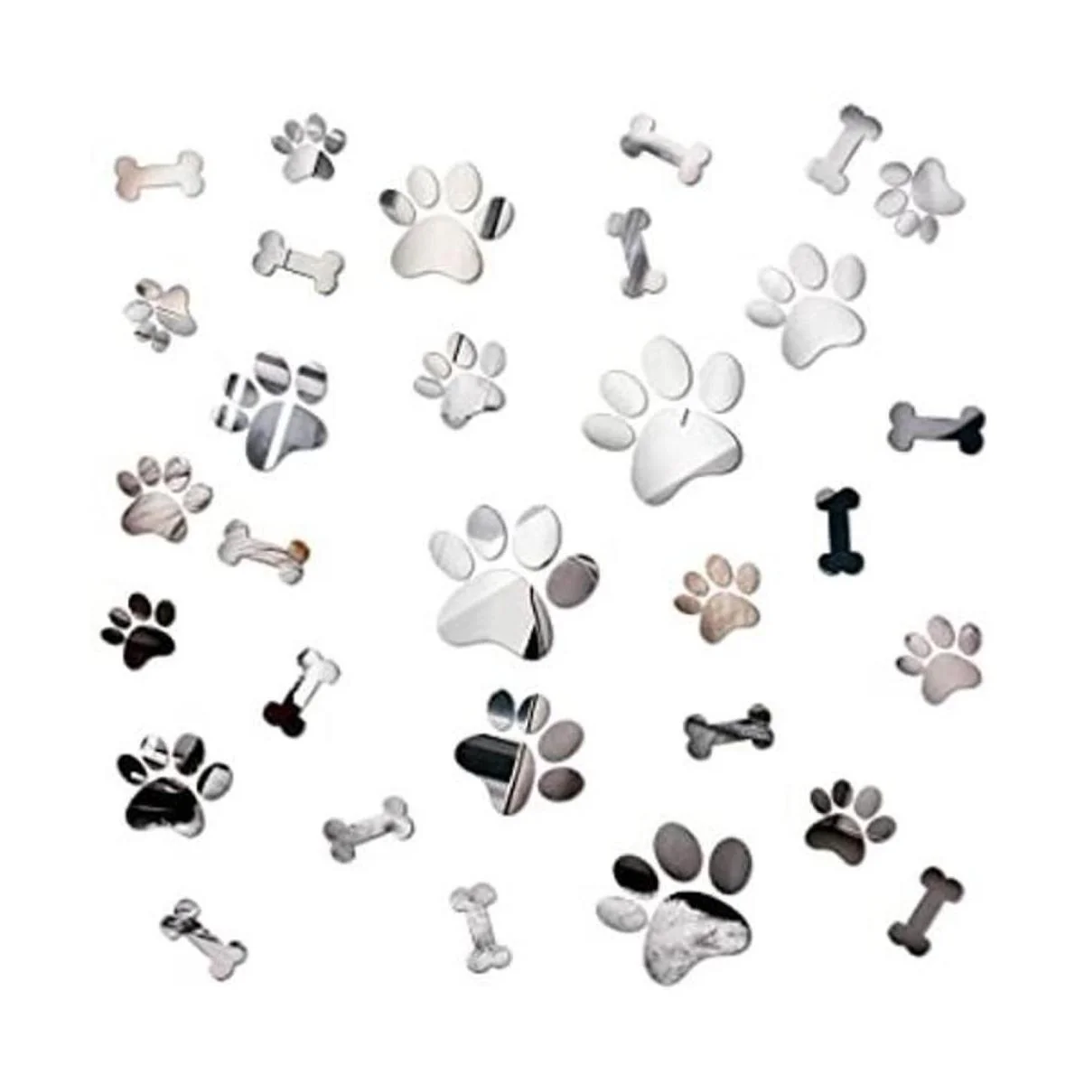 12 hojas de espejo de perro adhesivo de pared incluye 18 piezas de perro de impresión de pata de perro pegatina de pared 8 piezas de huesos de perro pegatinas de pared extraíble perro perro cachorro habitación pared pegatina para niños adolescentes niña niño cuarto dormitorio hogar
