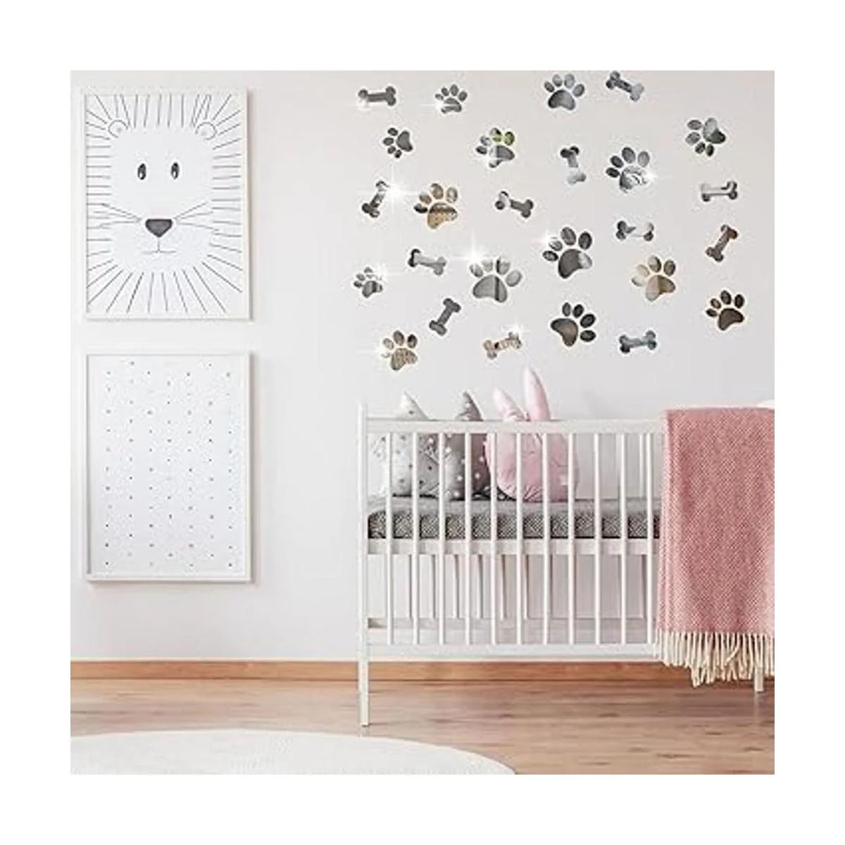 Material de calidad: estas pegatinas de huellas de perro y hueso están hechas de material acrílico de calidad, que es fiable, resistente y seguro para decorar la habitación de tu hijo, no se decolora ni deshilacha fácilmente