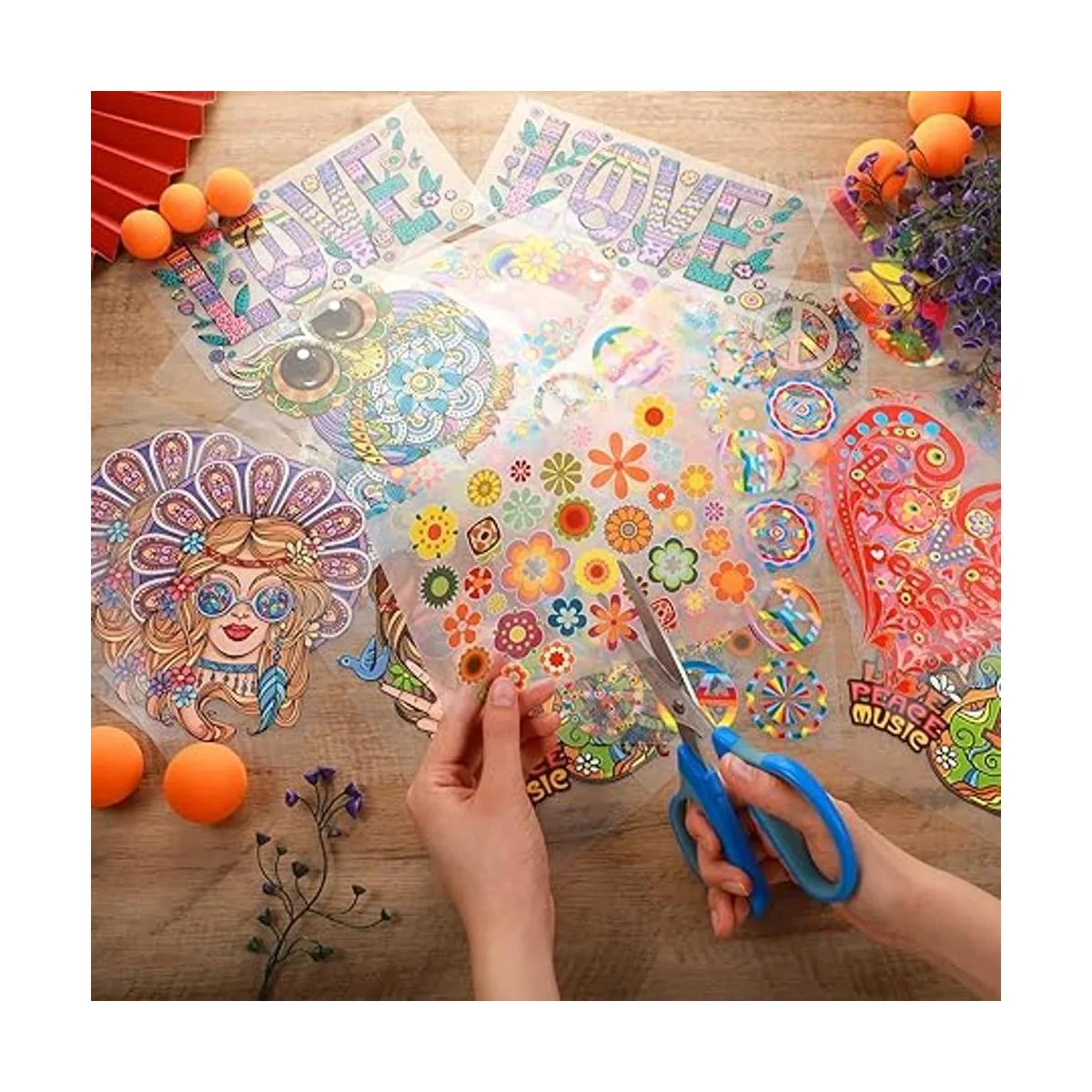 12 hojas hippie de vinilo de transferencia para planchar para manualidades, lindo parche de bricolaje, hojas de vinilo coloridas, gnomo, coches, paz, amor, suministros de manualidades estilo hippie