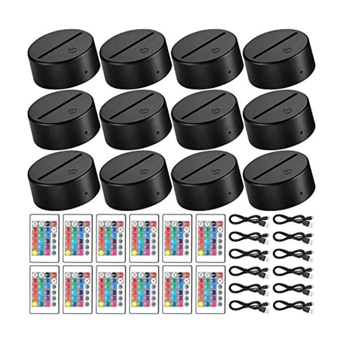 12 juegos de lámpara de luz LED nocturna 3D, base de pantalla de luz LED de 16 colores con cable USB de control remoto, base de lámpara de luz de Navidad para acrílico y vidrio de resina para restaurante, habitación, tienda negro