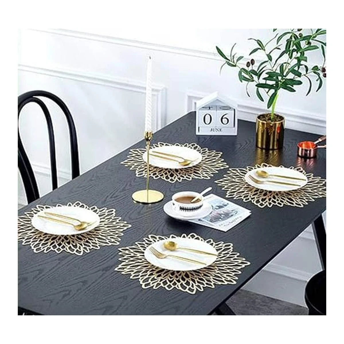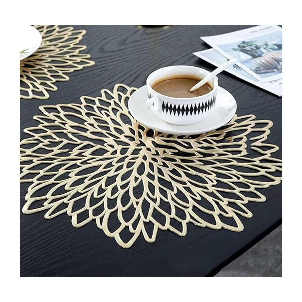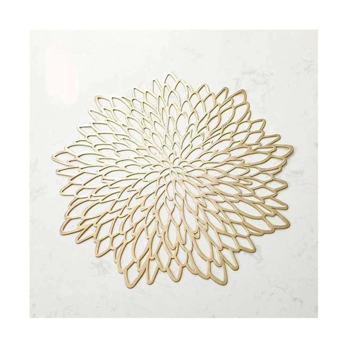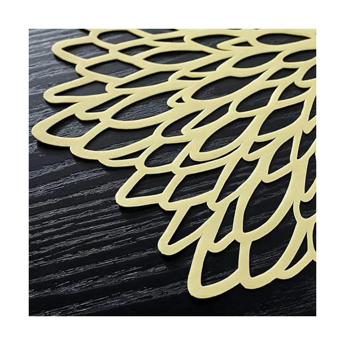 12 manteles individuales metálicos con flores huecas de vinilo, antideslizantes, aislamiento térmico, decorativas, color dorado, Philopack