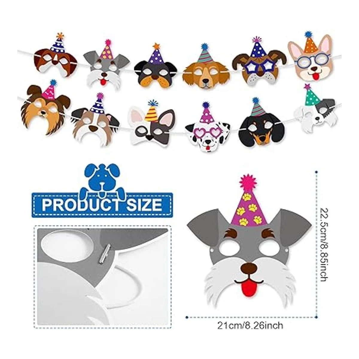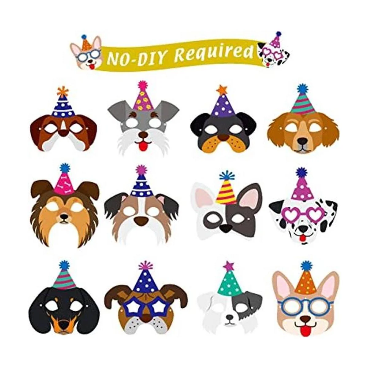 12 máscaras de cumpleaños para perro, máscaras divertidas de papel con temática de perro, máscaras de cumpleaños, guirnalda temática de perro, decoración de fiesta, cartulina, baby shower, perro, pancarta de cumpleaños para perro, cachorro, recuerdos de fiesta de cumpleaños