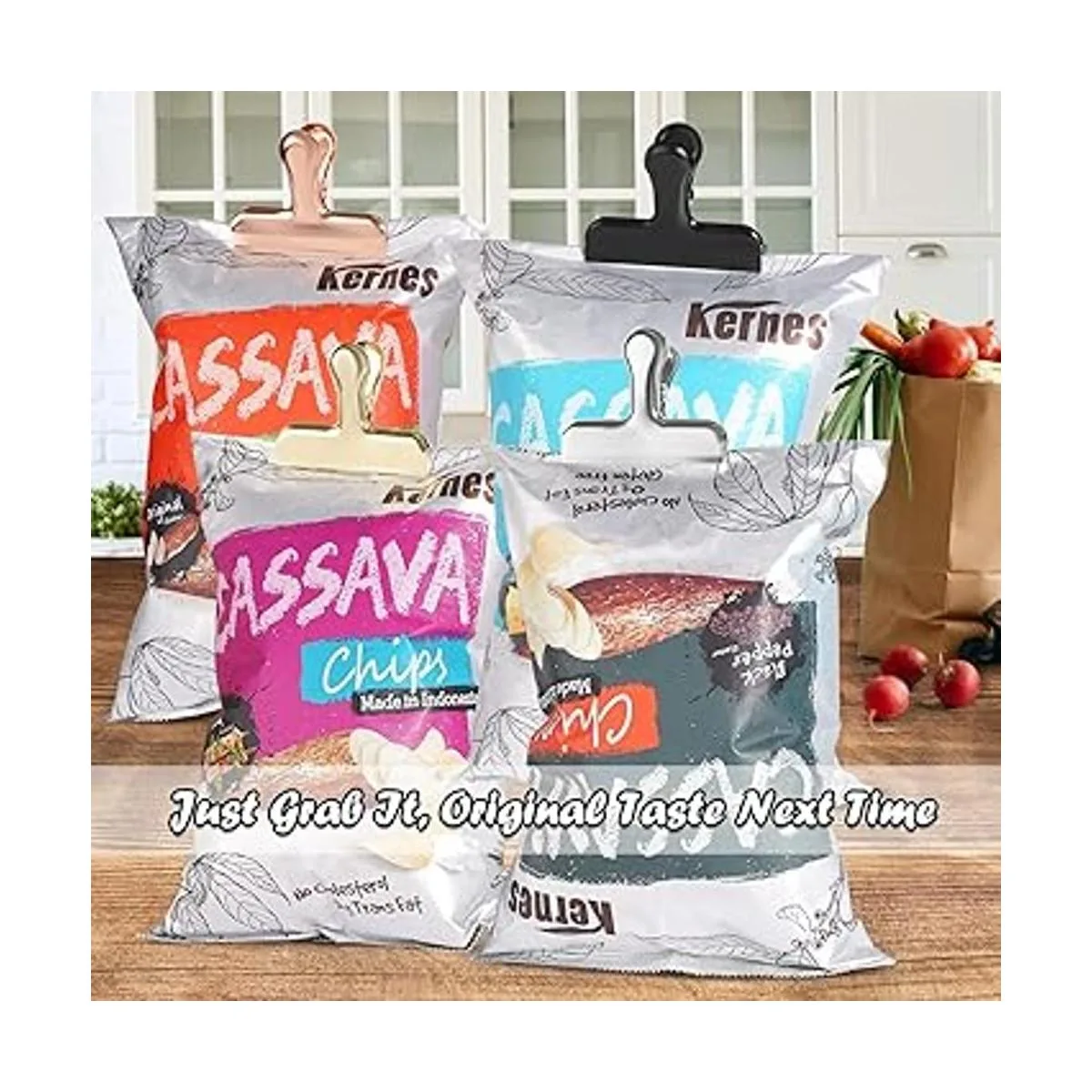 High Quality Material Our steel chip bag clips are stamped from doublesided bright coldrolled steel strip. The material has strong toughness and is quite stylish because of a stainless steel construction. The surface is electroplated with nickel, which is not easy to rust and shiny. It can be washed with water directly after use, and it is easy to clean.