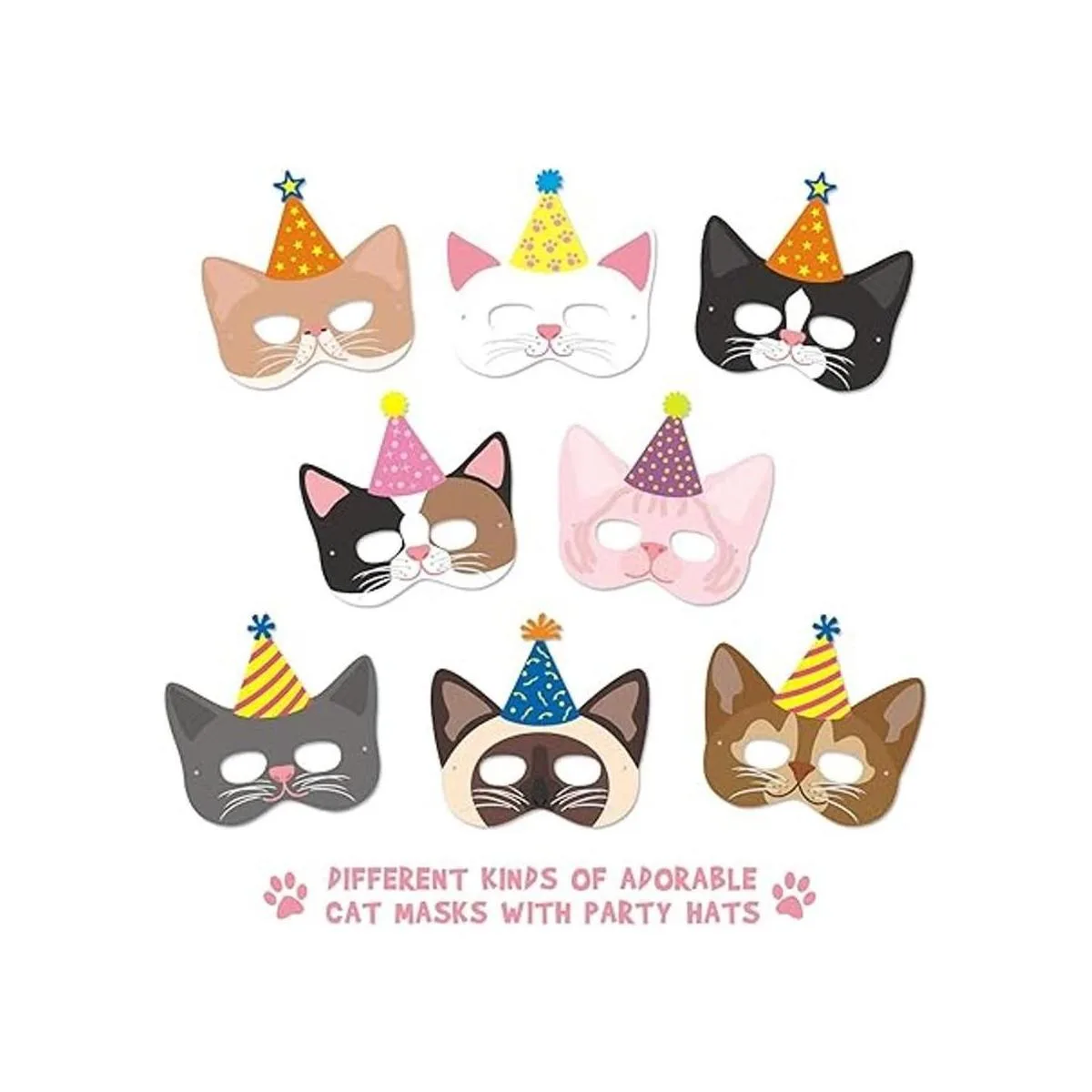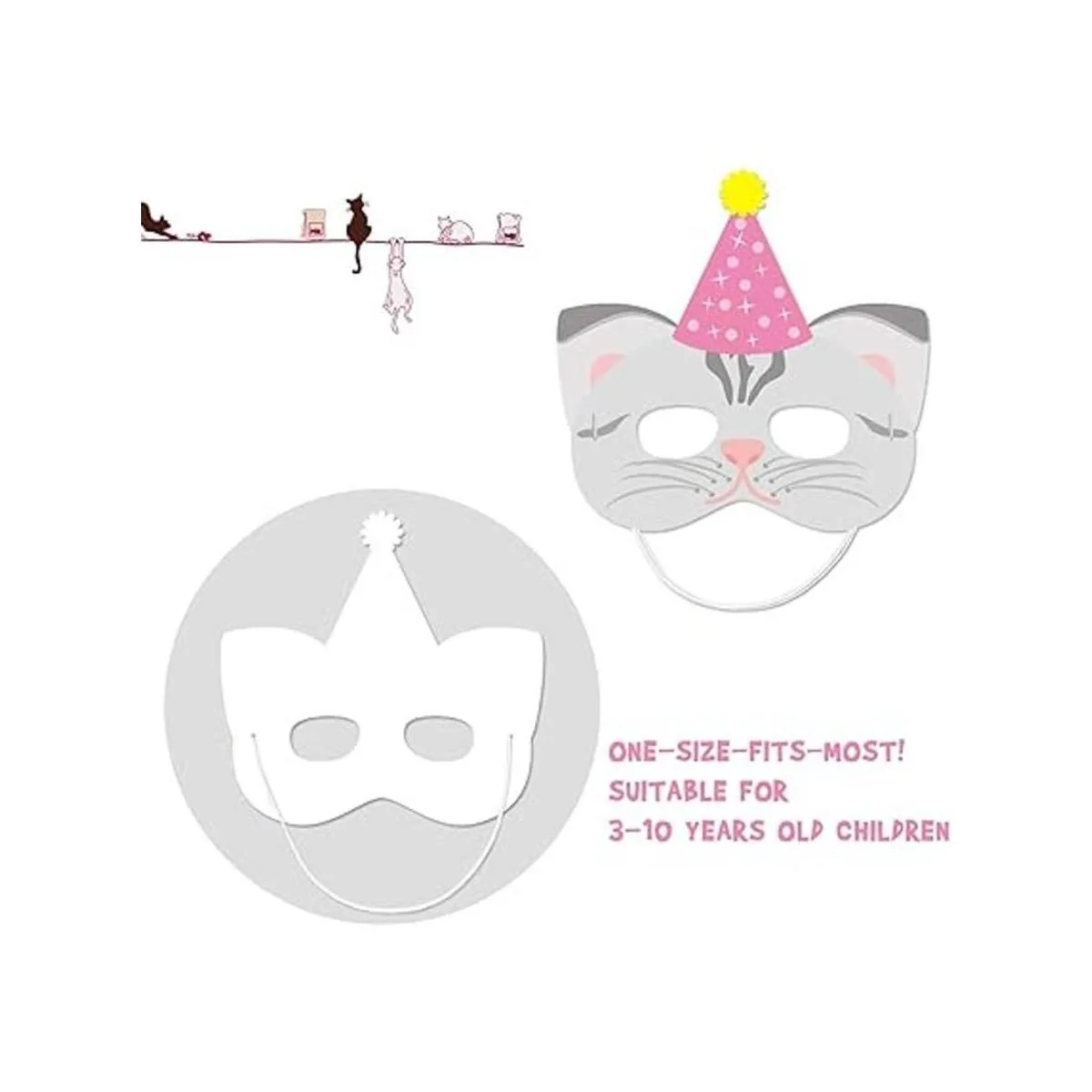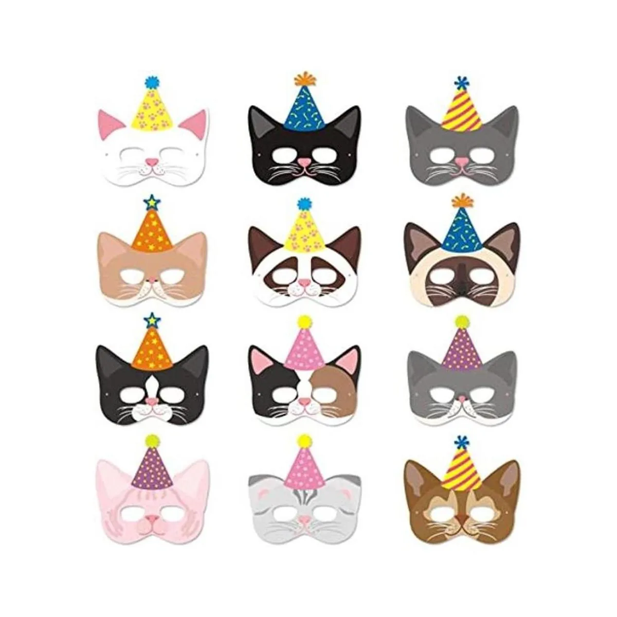 12 paquetes de máscaras de fiesta para gatos y gatitos con sombreros de fiesta de Halloween, máscaras para niños, gatitos, fiestas de cumpleaños, disfraces, suministros de fiesta