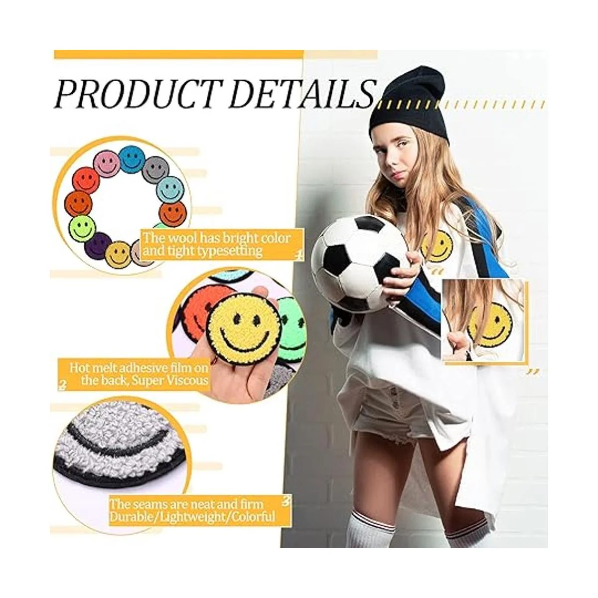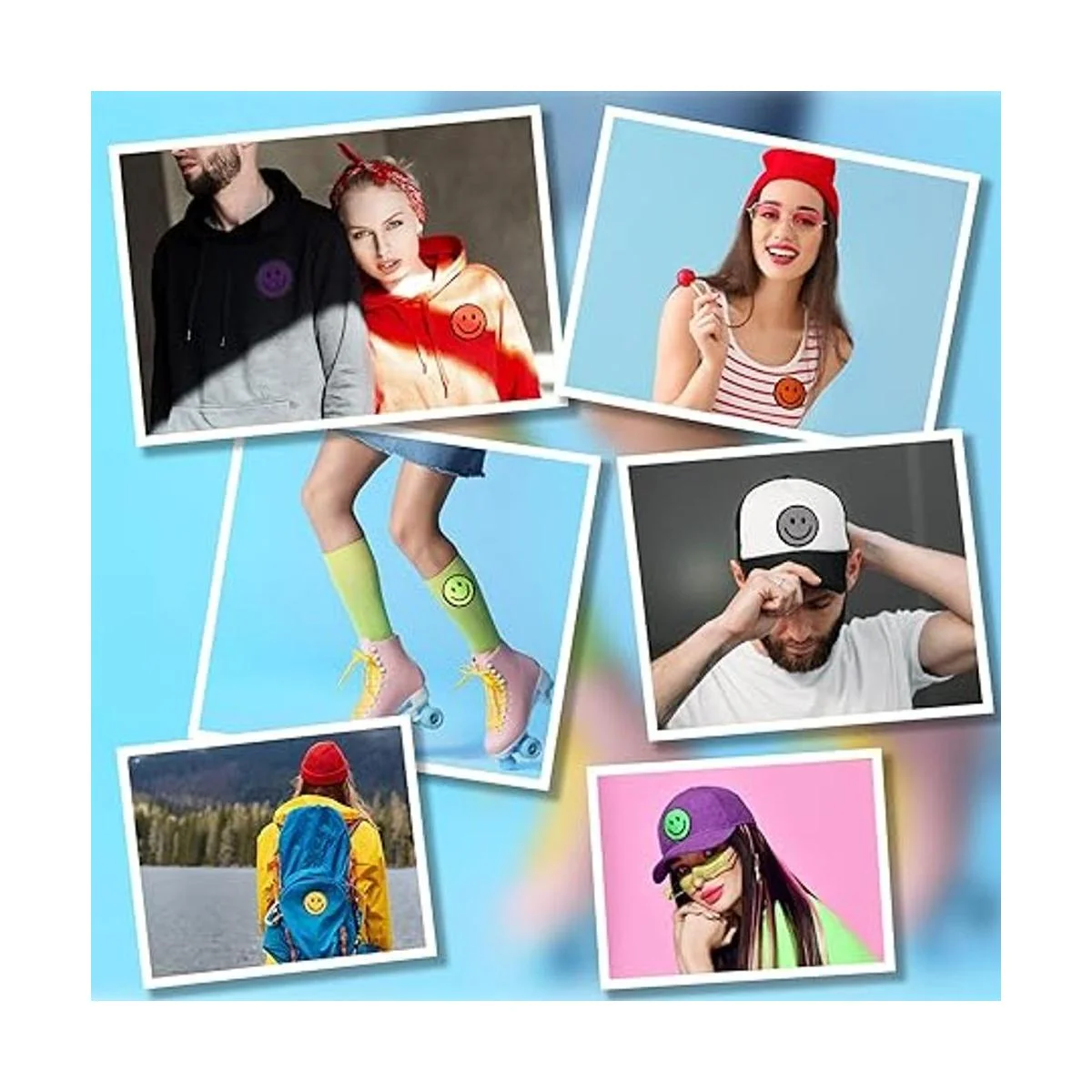 Diseño cuidadoso: estos parches decorativos de cara feliz cuentan con un patrón de cara sonriente, lo que hace que tus artículos se vean más encantadores y atractivos en la vida cotidiana, lo que te ofrece una agradable experiencia de uso
