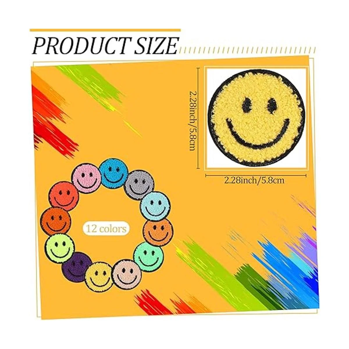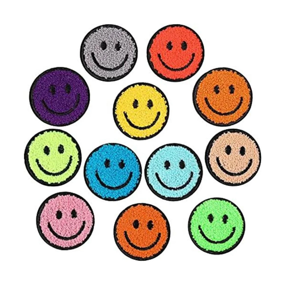 12 parches de chenilla para planchar con cara sonriente, parches de felpilla para ropa, chaquetas, parches de sonrisa para sombreros, bordados, manualidades, 2.2 pulgadas estilo toalla