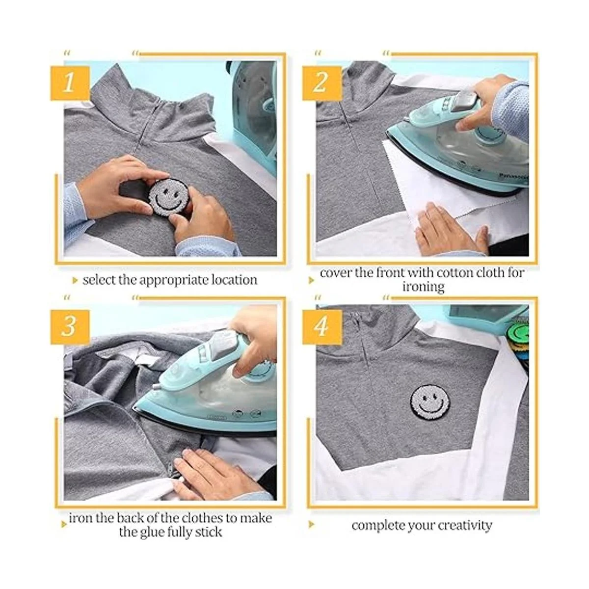 12 parches de chenilla para planchar con cara sonriente