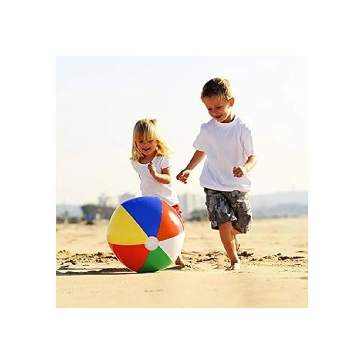 Las bolas hinchables de playa de arco iris son de 3.3 ft de diámetro desplegadas; juguetes de playa coloridos.