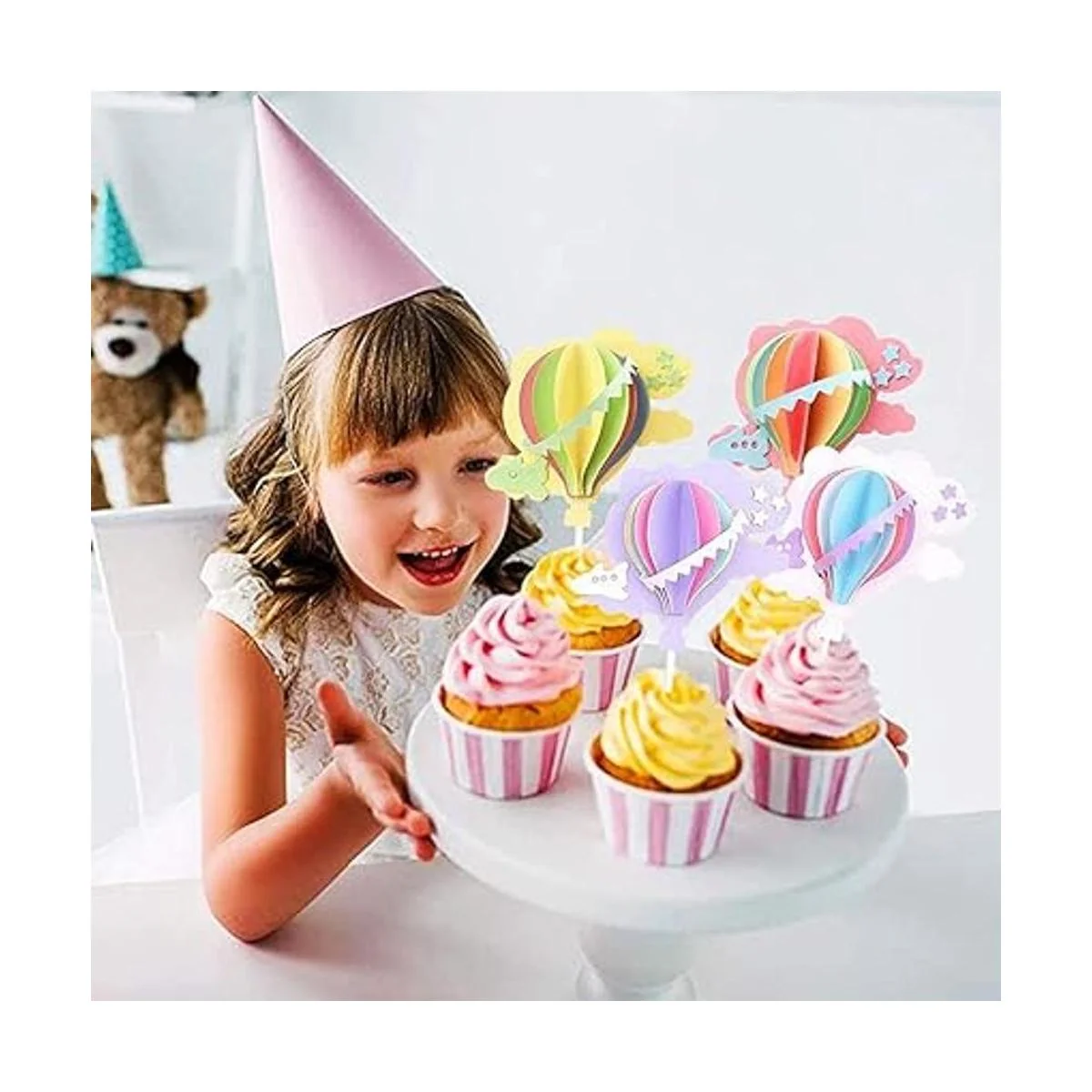 Materiales: las decoraciones de papel de globo de aire caliente 3D están hechas de papel, lo que hace que tu cupcake sea encantador y te traiga más alegría.