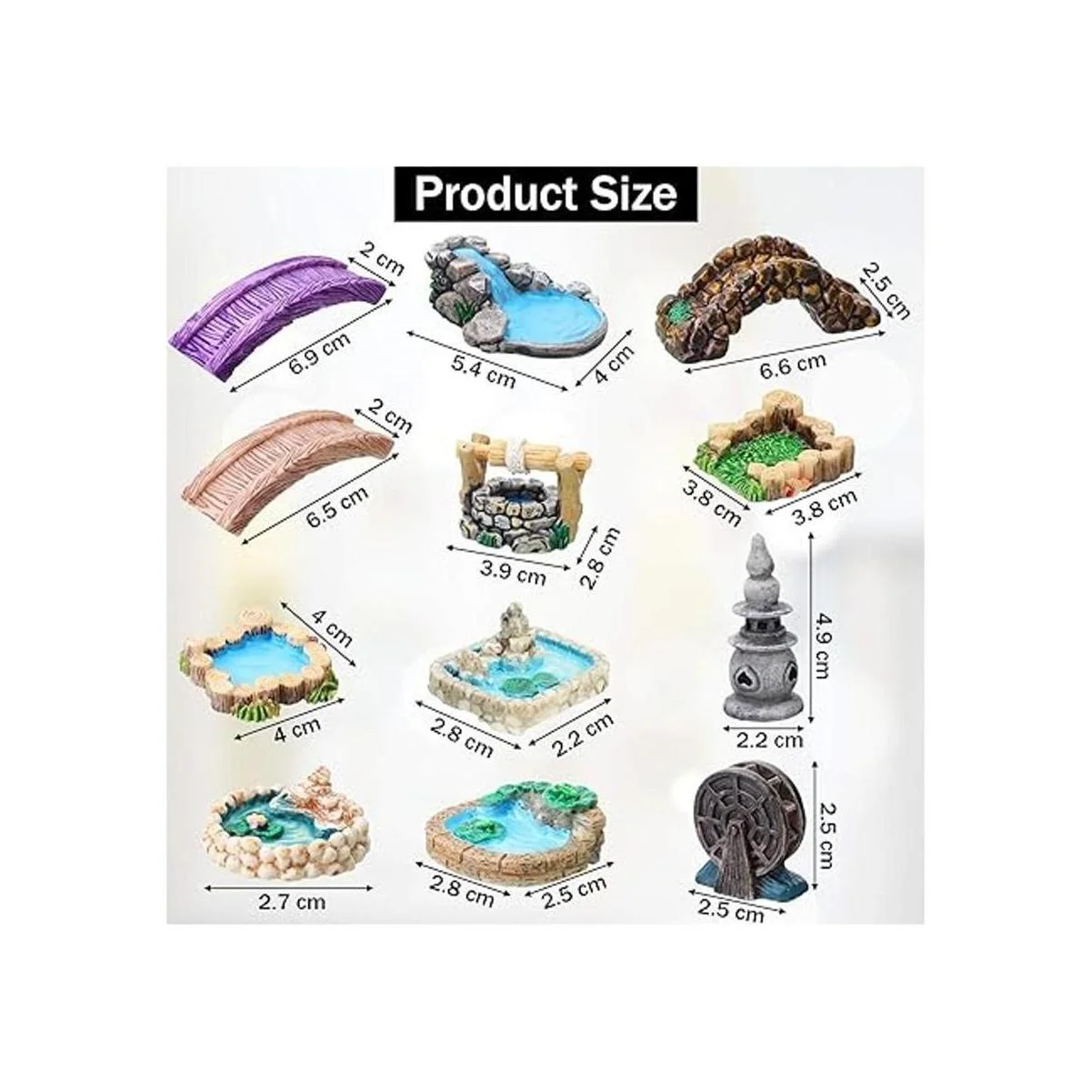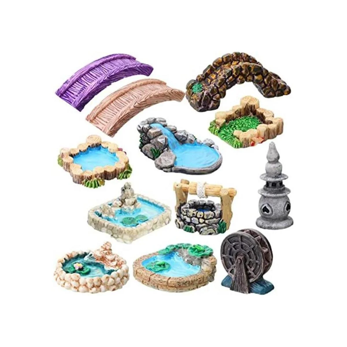 12 piezas de accesorios de jardín de hadas en miniatura, figuras de puente de jardín mini faro para pozo de agua, figuras de adorno de jardín en miniatura para decoración de jardín de bricolaje estilo clásico