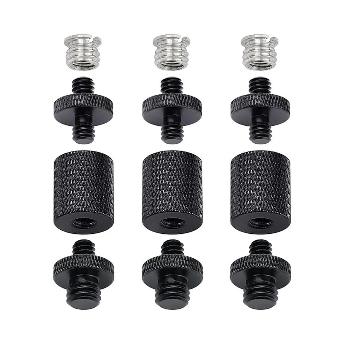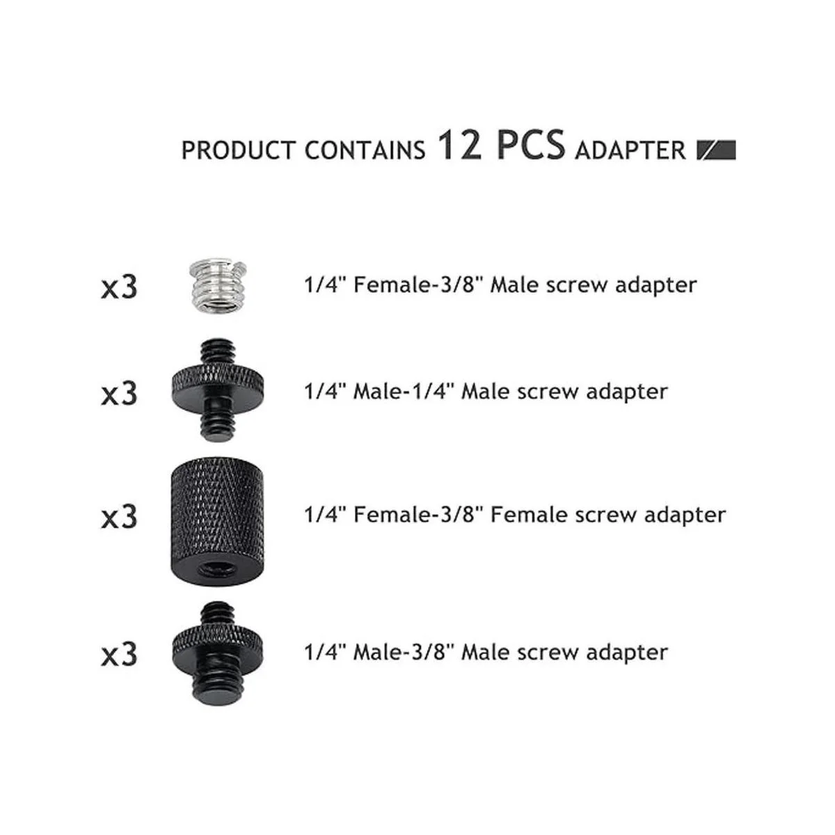 12 piezas de adaptador de soporte de luz de 14 pulgadas y 38 pulgadas, convertidor de adaptador de tornillo para trípode de cámara DSLR, aparejo de hombro, soporte de luz flash, jaula de cámara, equipo de iluminación, panel LED, montaje en trípode GoPro Frgyee