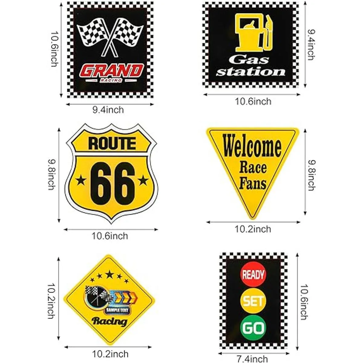 Divertido juego de carteles para coche de carrera: este juego incluye 12 carteles de fiesta de carreras en 12 estilos diferentes, la cantidad y los estilos que proporcionamos son suficientes para que lo utilices en diferentes ocasiones.