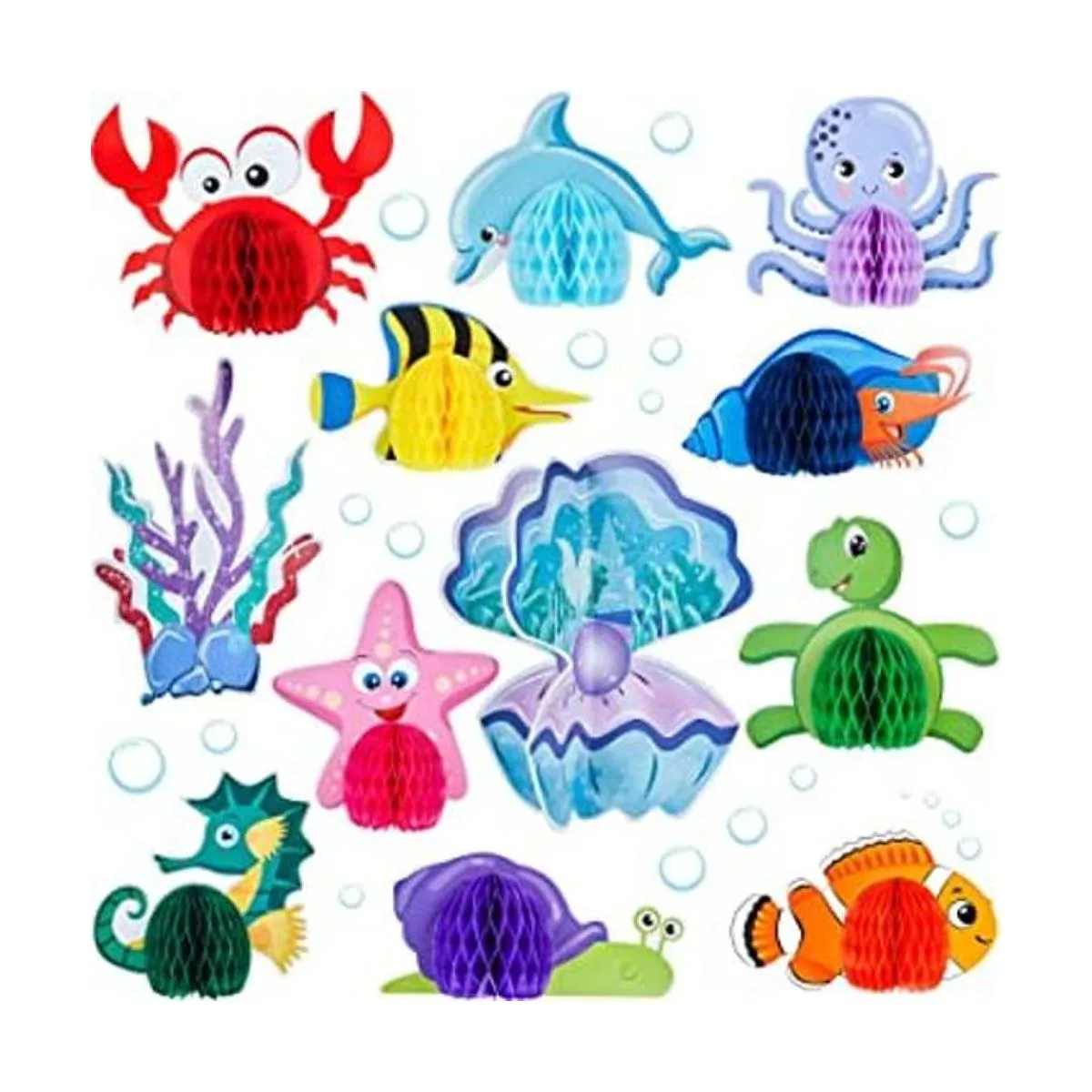 12 piezas de centro de mesa de animales marinos del océano, decoración de mesa bajo el mar, decoración de criatura marina con temática de océano, mesa de sirena de pez, panal para fiesta de cumpleaños temática de playa, baby shower