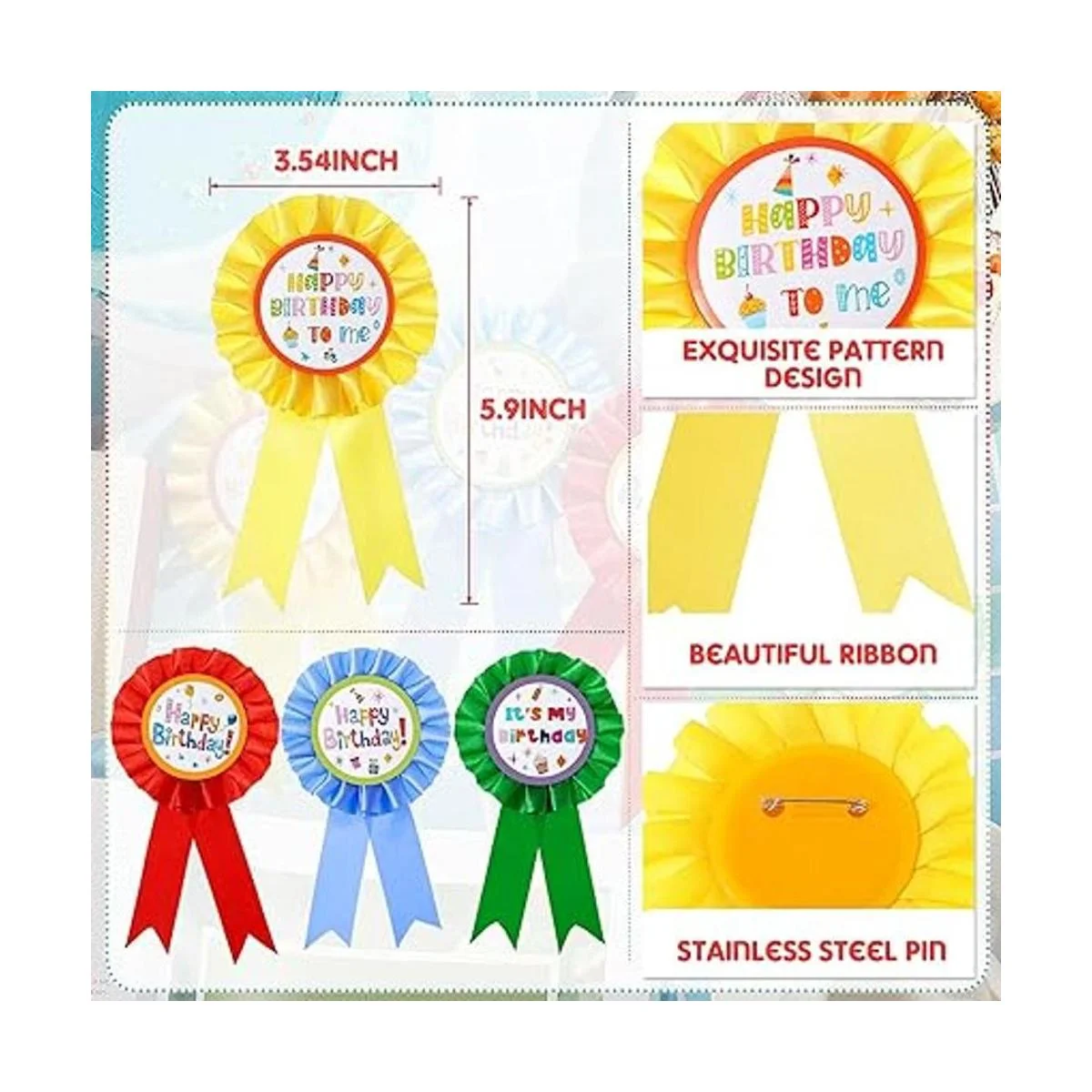 12 piezas de cinta de premio de feliz cumpleaños, hojalata de cumpleaños, roseta de cumpleaños, broche de broche de insignia de feliz cumpleaños para regalos de fiesta y decoración de fiesta de baby shower, 5.5 x 3.1 in