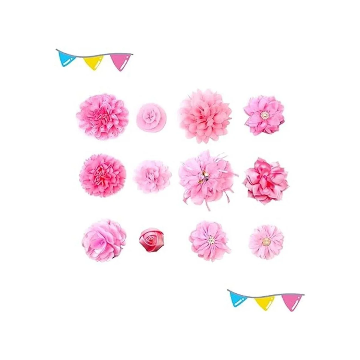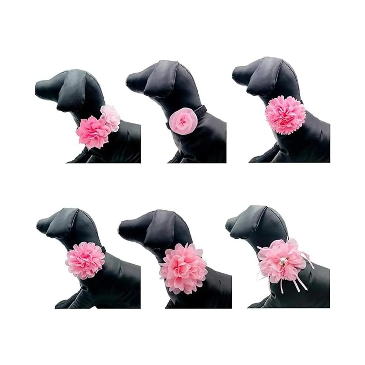 12 piezas de collar de perro rosa con lazos y flores para niñas, cachorros, gatos, hembra, pequeños, medianos para perros, adornos, decoración para bodas, fiestas de cumpleaños, etc. Accesorios para collar de mascotas