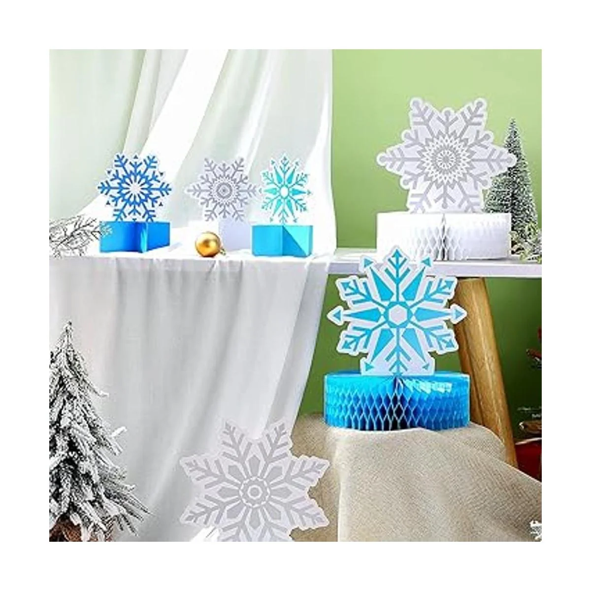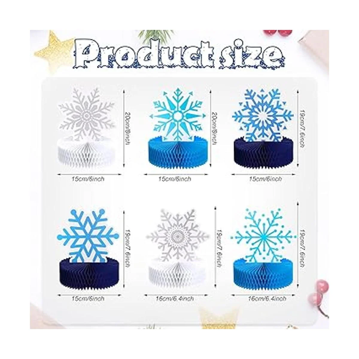 Decoraciones de fiesta de copo de nieve: recibirás 6 estilos diferentes de centros de mesa con temática de copo de nieve con 2 tamaños diferentes, un total de 12 piezas; diseño exquisito y tamaño adecuado que hacen que estas decoraciones de copo de nieve sean brillantes para fiestas