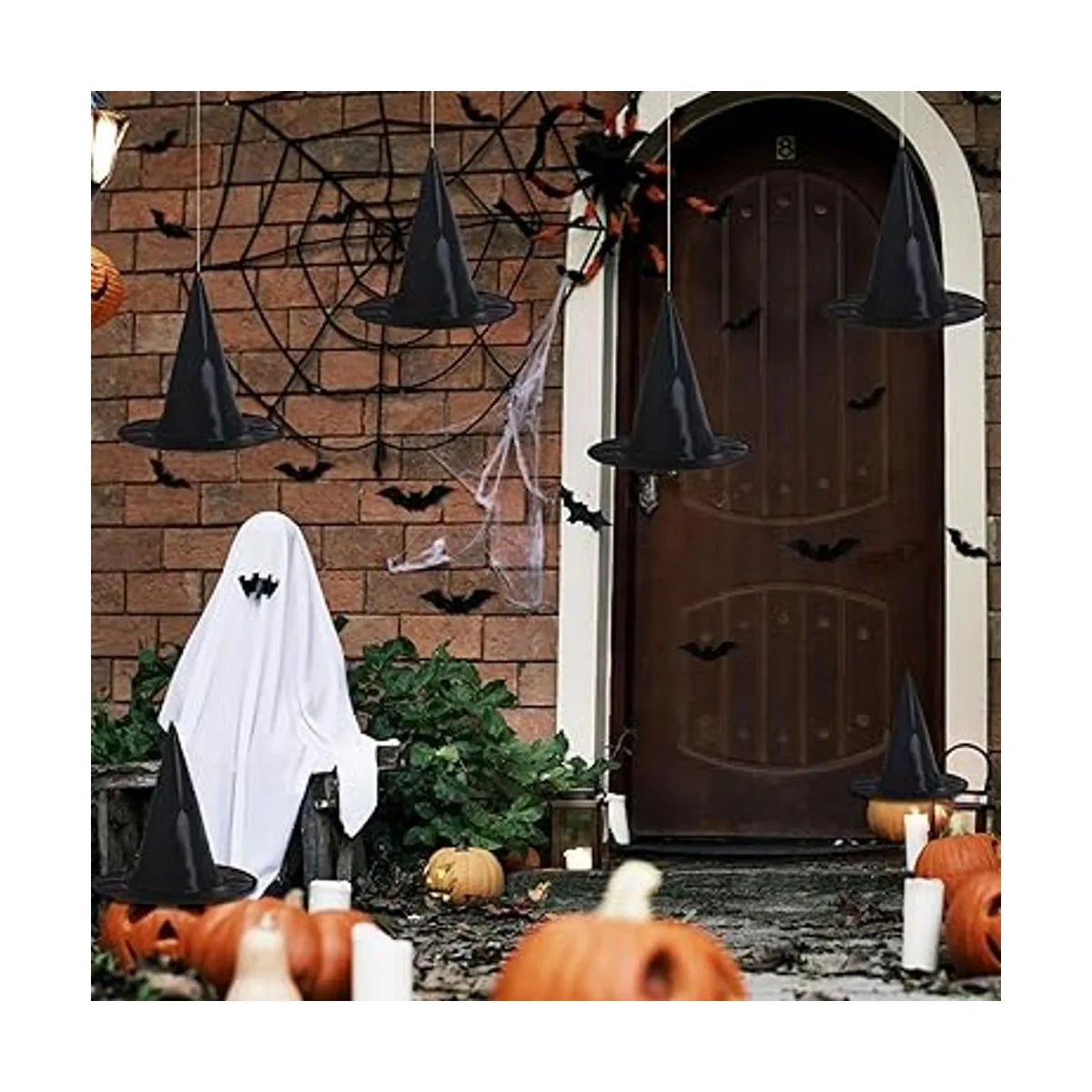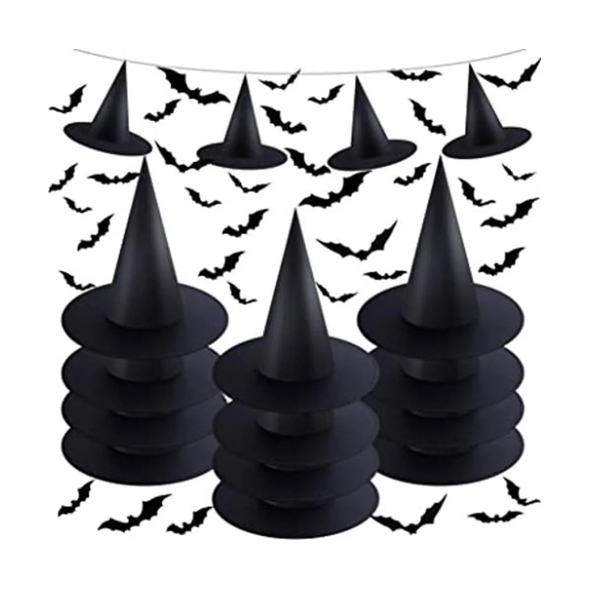 Decoración de Halloween: el sombrero de bruja de Halloween es una adición bienvenida para la decoración del hogar, porche, jardín, aleros, techo, patio, ramas de árbol y más, los murciélagos se pueden decorar en paredes o ventanas, llaman fácilmente la atención de tus invitados y hacen que se sientan un ambiente festivo.