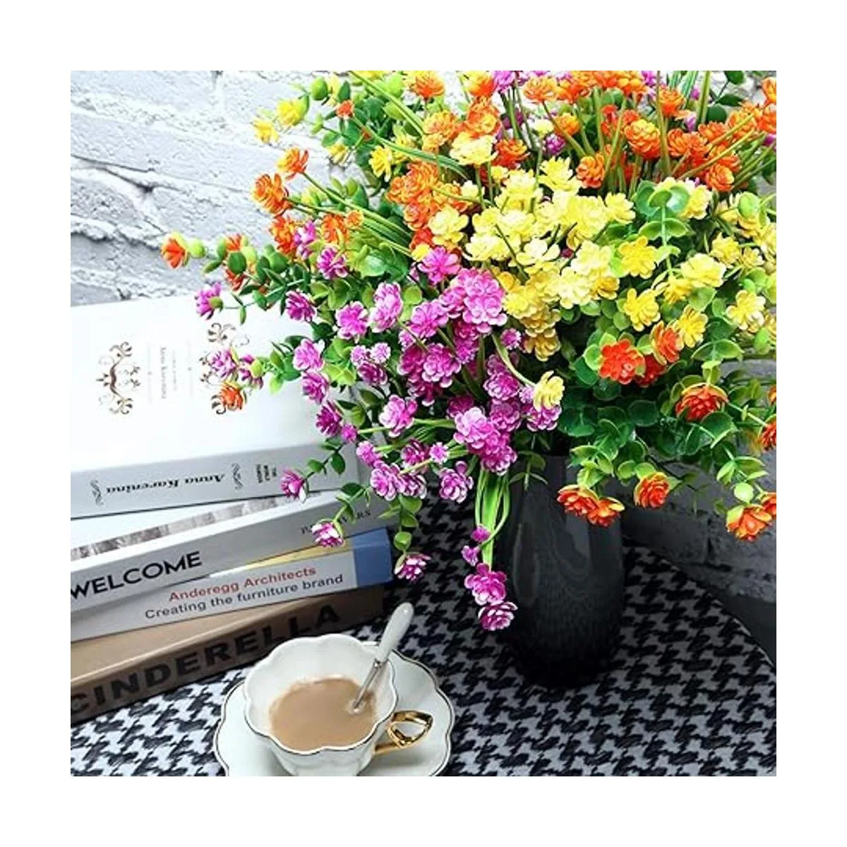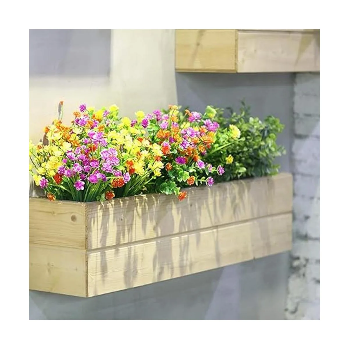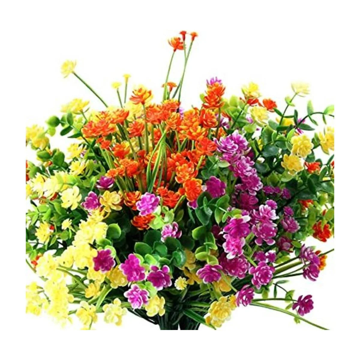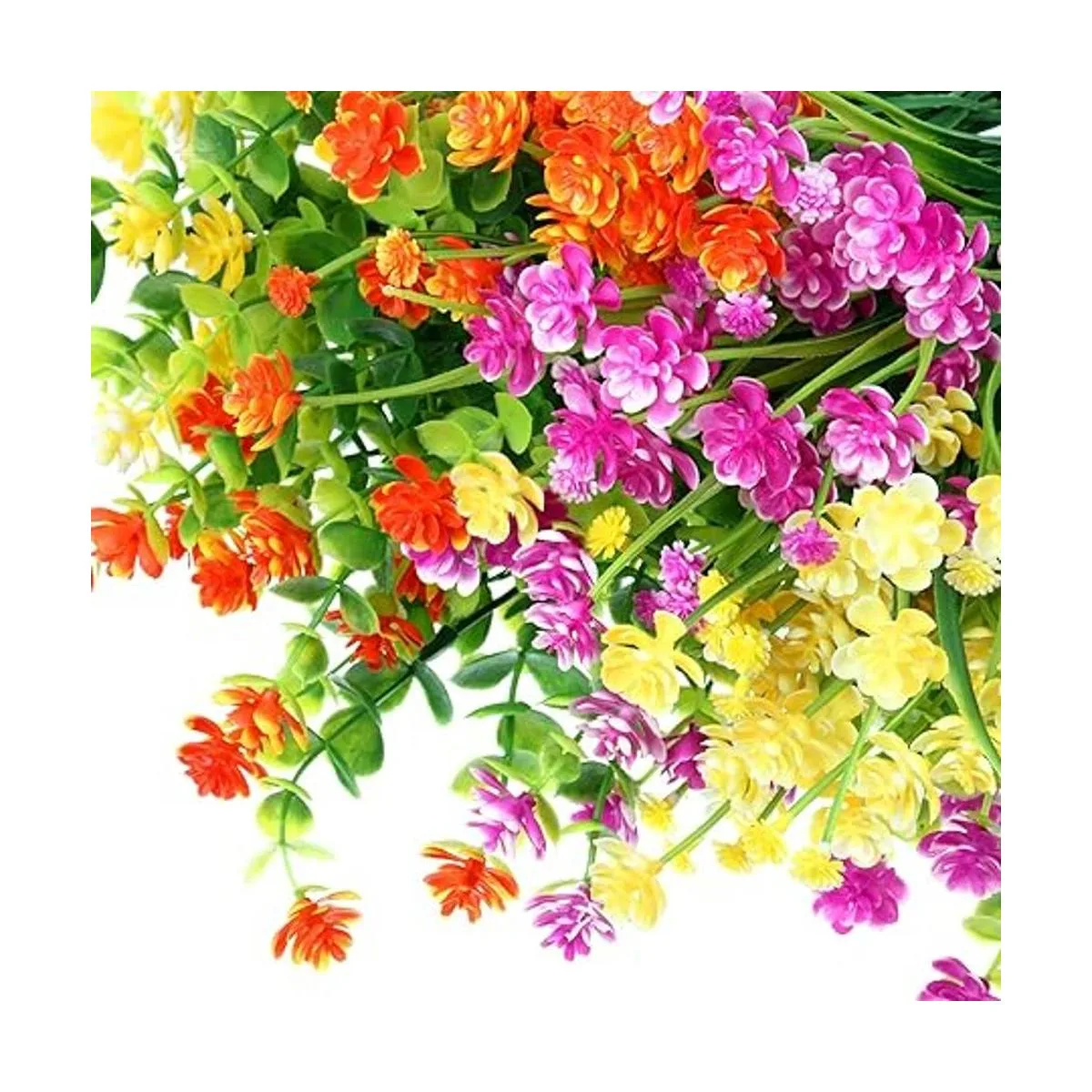 Resistencia a los rayos UV: el ramo de plantas coloridas falsas es resistente a los rayos UV y no se decolora fácilmente, puede contra el viento, la lluvia y otros mal tiempo, adecuado tanto para decoración interior como exterior, no se morirá y es fácil de cuidar, siempre se mantiene fresco
