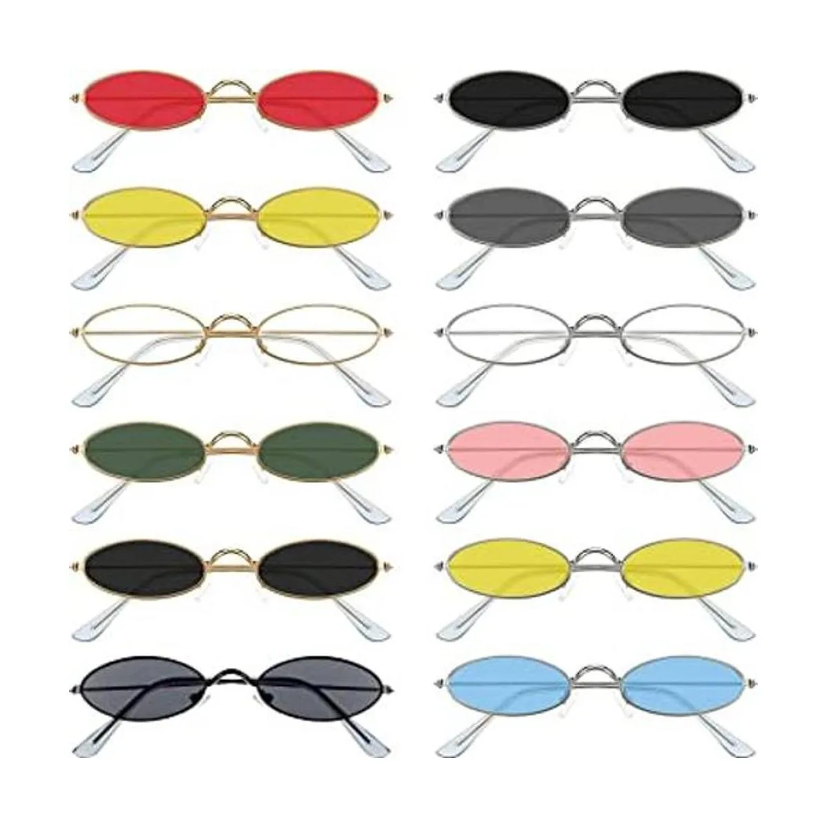 Lo que puedes obtener: el paquete incluye 12 lentes de sol ovaladas vintage, sus colores de lentes son diferentes, cantidad suficiente para que elijas combinar con tus estilos
