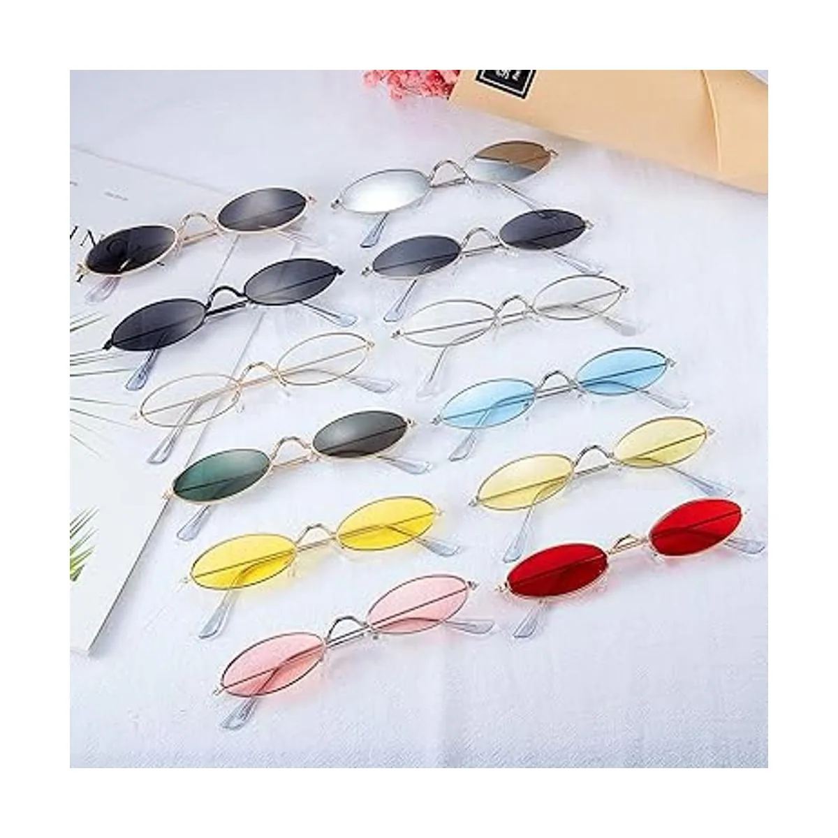 12 piezas de gafas de sol ovaladas estilo vintage, retro, con marco de metal, ovaladas, pequeñas gafas de sol vintage, colores dulces para hombre y mujer, Multi color, talla única