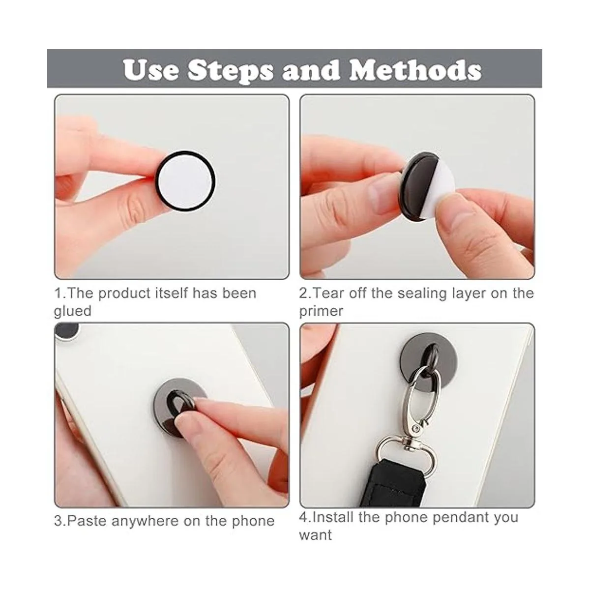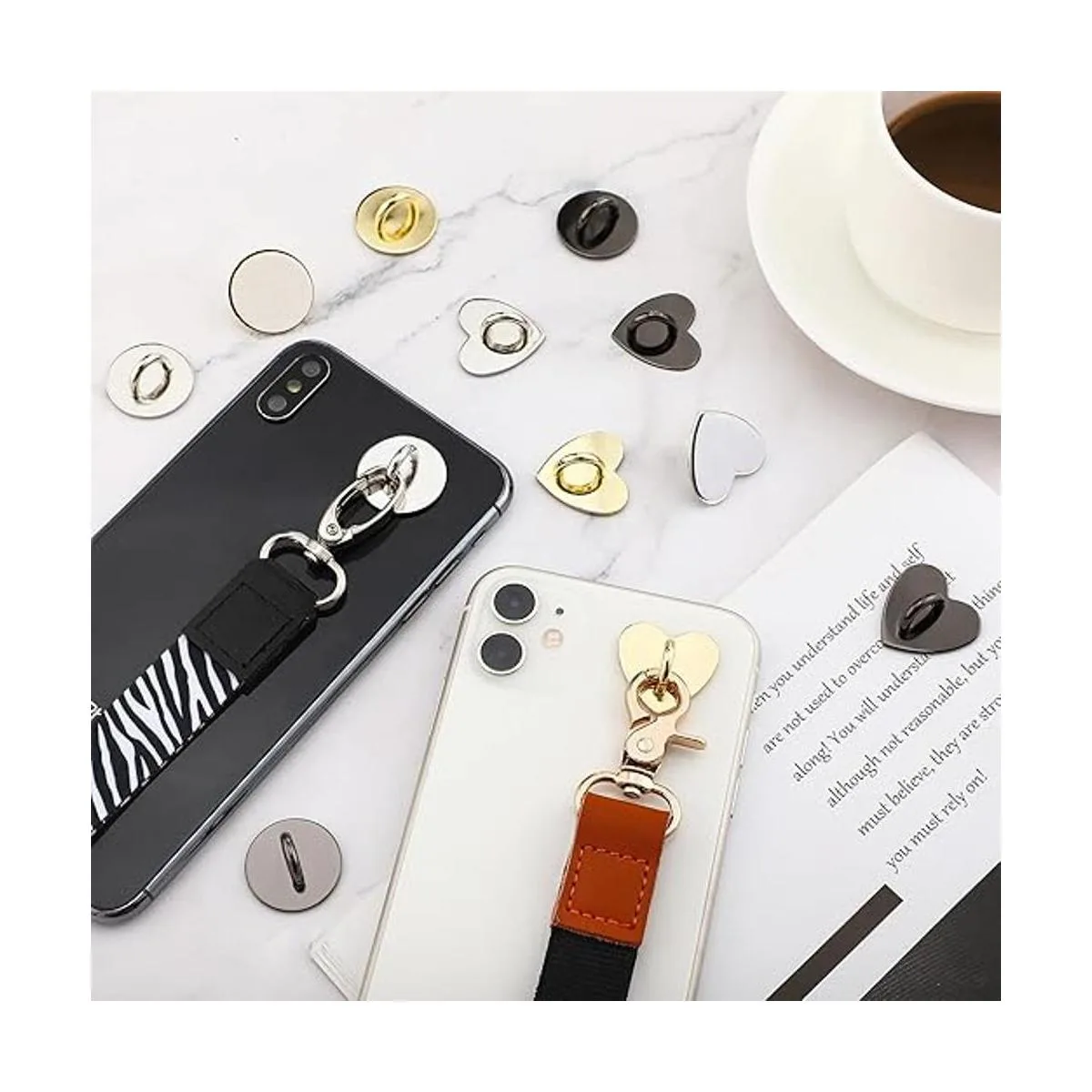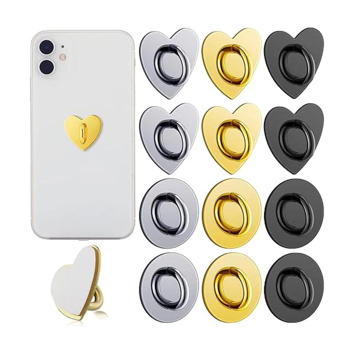 12 piezas de gancho para teléfono con gancho adhesivo de metal para teléfono móvil, anillo de dedo para teléfono celular, soporte para colgar en forma redonda y corazón, lindo llavero para teléfono, accesorios de oro, plata y negro