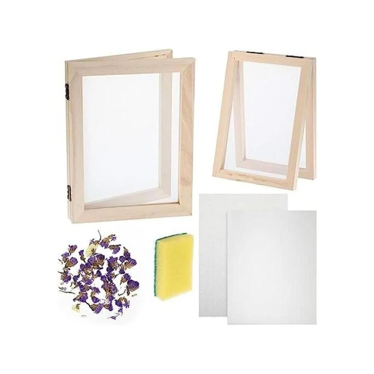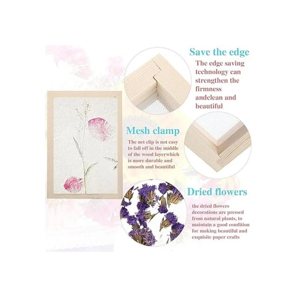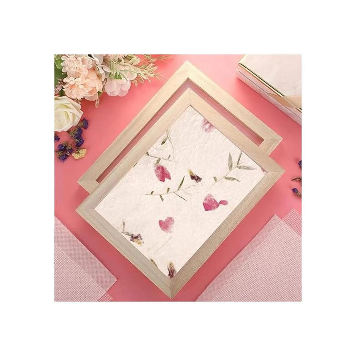12 piezas de kit de fabricación de papel, 2 tamaños de madera de papel de fabricación de papel de la pantalla de fabricación de papel molde de flores secas, esponja con paño de malla de repuesto para manualidades de papel de bricolaje