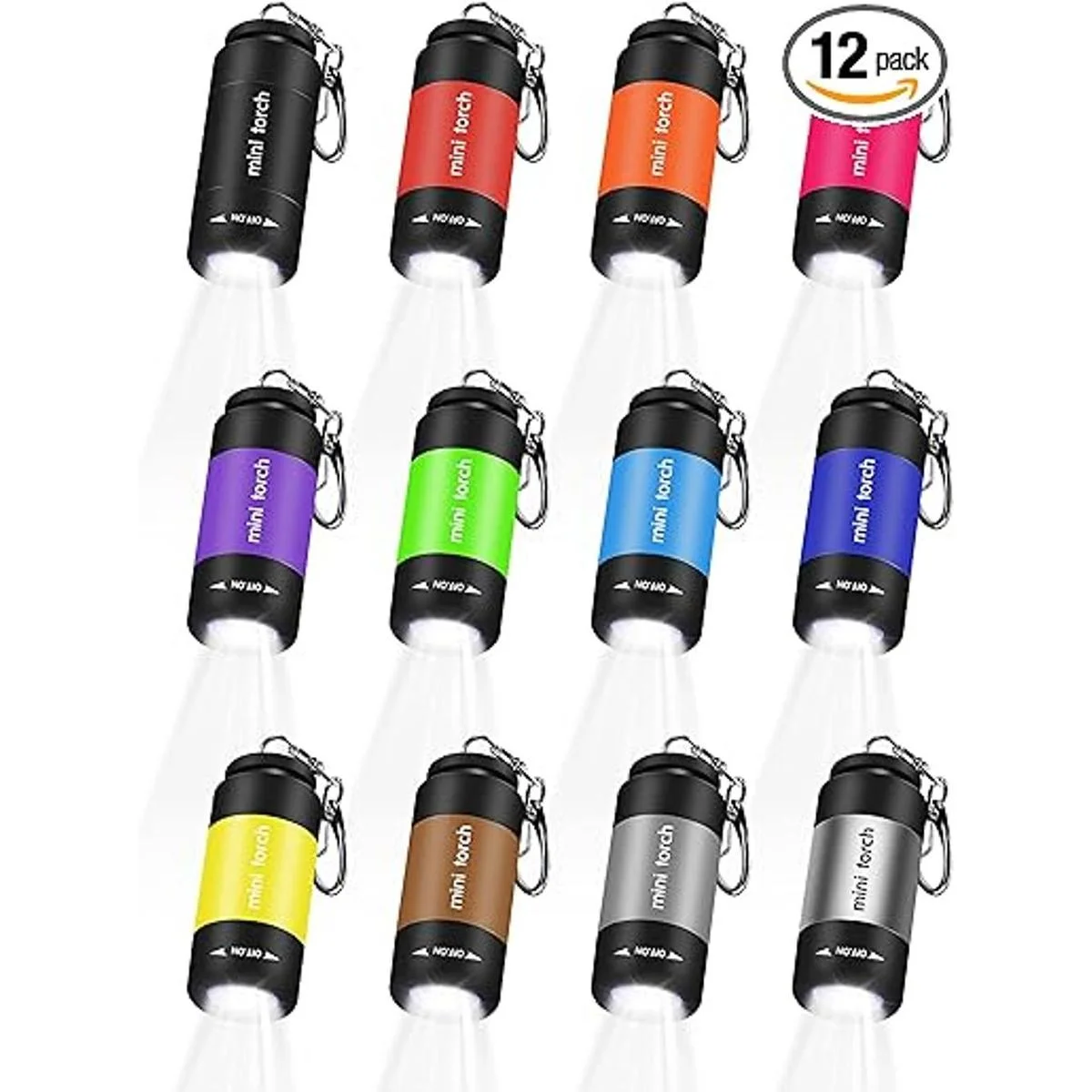 12 piezas de linterna mini llavero, linterna USB recargable colorida LED de alta potencia, multicolor luz blanca