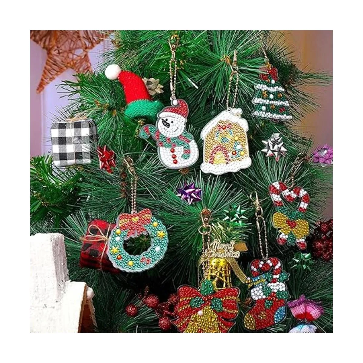 Ocasiones ampliamente aplicables: nuestros mini kits de pintura de diamantes se pueden aplicar como colgantes de teléfono, llaveros, etiqueta de regalo, etiqueta de felicitación, agradable como adornos de pared para decorar tu árbol de Navidad, hogar, oficina y aula; brillarán bajo la luz, creando un ambiente festivo alegre y feliz