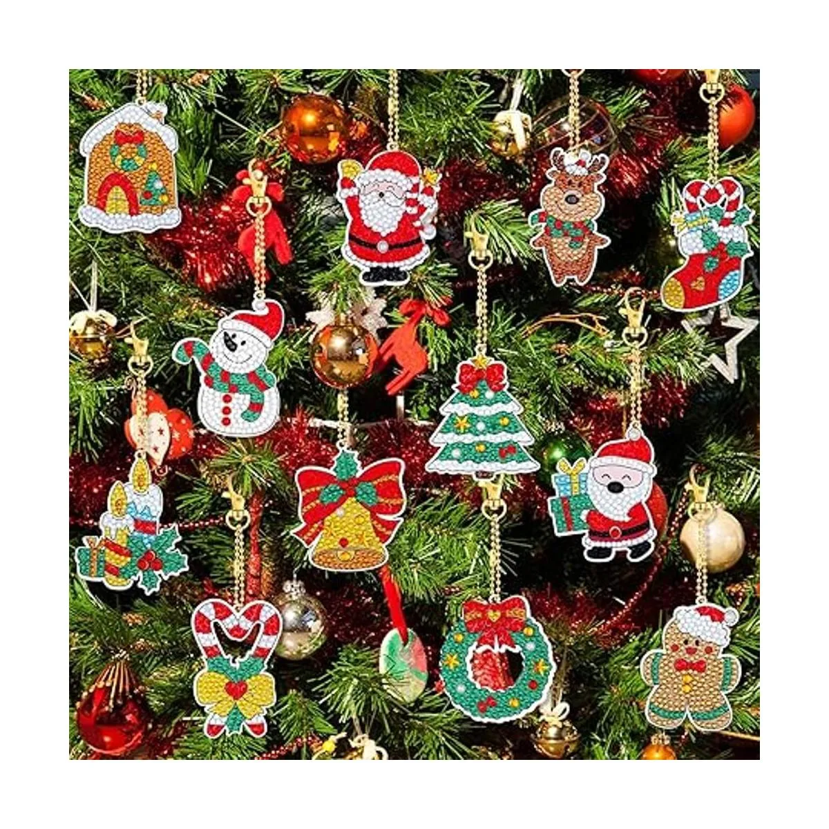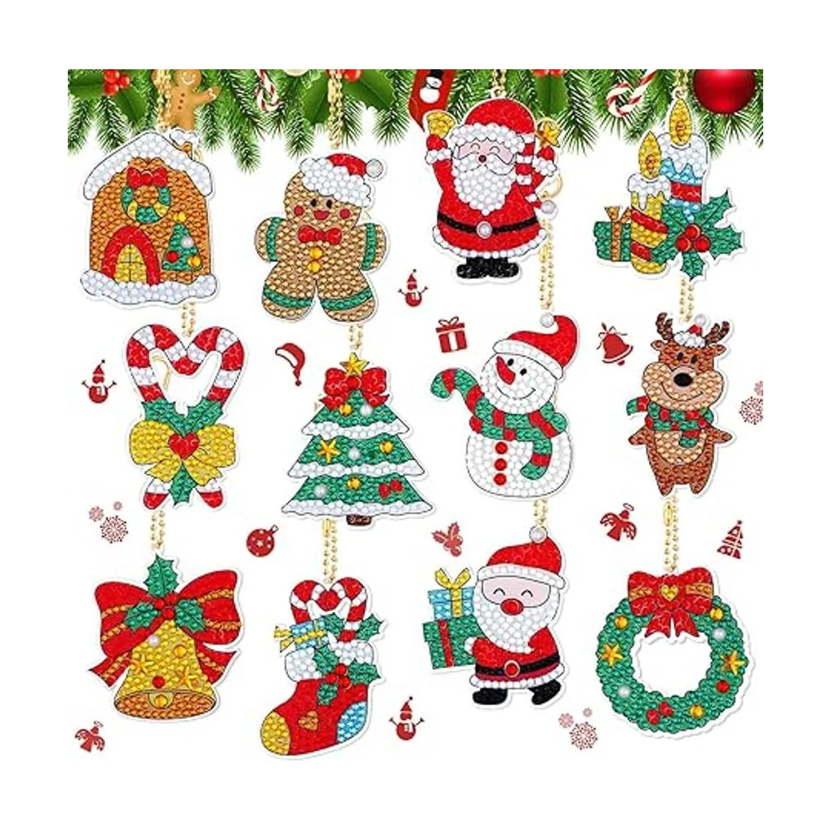 12 piezas de llavero de pintura de diamantes de Navidad