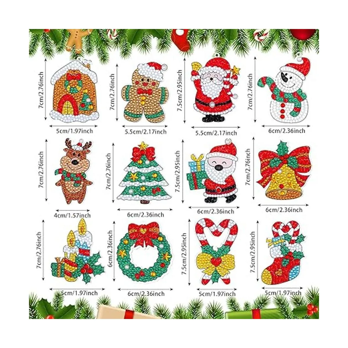 12 estilos diferentes: el paquete viene con 12 kits de adornos de Navidad, disponibles en 12 estilos diferentes, 1 pieza para cada estilo, que están diseñados con patrones temáticos de Navidad, encantadores y fáciles de llamar la atención de los demás, ideal para decoración