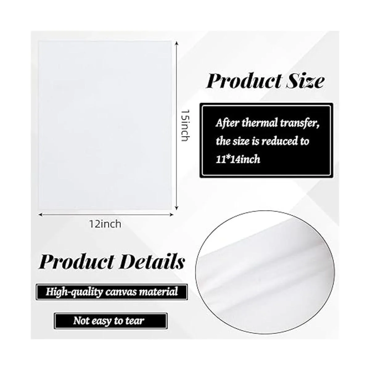 Dimensiones adecuadas para aplicar: cada lienzo mide aproximadamente 11.8 x 15.0 in antes de la transferencia de calor, y se encogerá a aprox. 11.0 x 13.8 in después de la transferencia de calor; ten en cuenta que esto es normal, y el tamaño adecuado facilitará tu uso