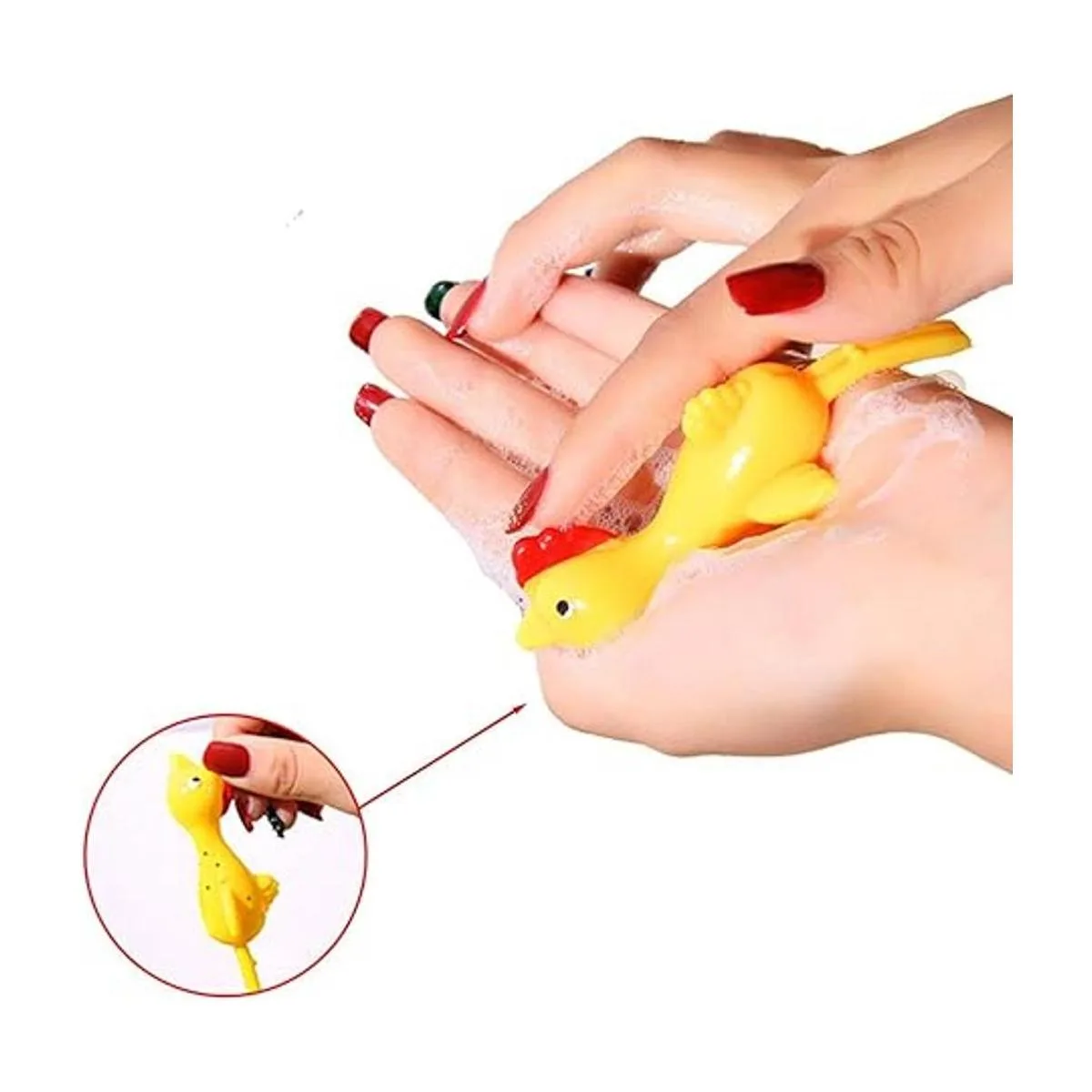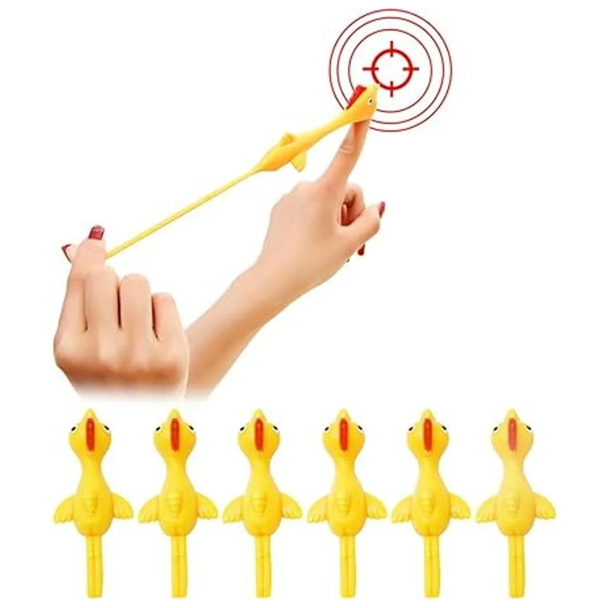 Fácil de jugar: coloca el dedo índice en el agujero debajo de la cabeza del pollo y tira de su cola con la otra mano, solo apunta y dispara al objetivo. Estas gallinas se pueden pegar en la pared o el techo y luego caerse lentamente. Juegos perfectos al aire libre y regalo de fiesta para niños y adultos.
