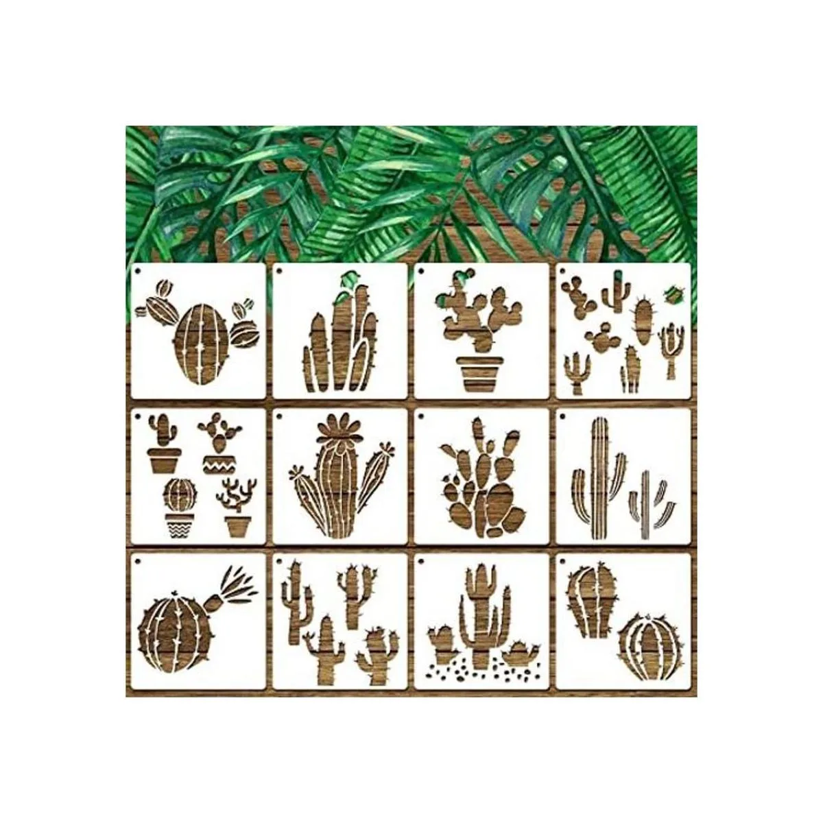 12 plantillas de cactus tropicales de arte de cactus de verano, reutilizables, para dibujos de cactus, para fiestas, cactus, pintura plantilla, para verano, cinco de mayo, para niños, manualidades, cuaderno, tarjetas de felicitación, álbum de recortes