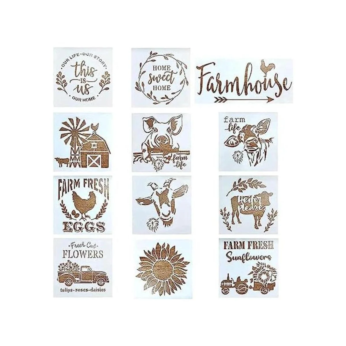 12 plantillas de letrero de granja, plantillas reutilizables de granja, pintura temática, plantillas de granja grandes, plantillas de granja para pintar sobre madera, plantillas de girasol, plantillas de camión de granja, patrón de plantilla de oveja